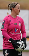 Fær sendingu til baka og fær á sig pressu, missir boltann þegar hún ætlar að sóla sig út úr pressunni og Madison rennir boltanum í autt markið.