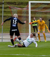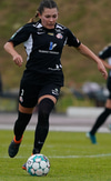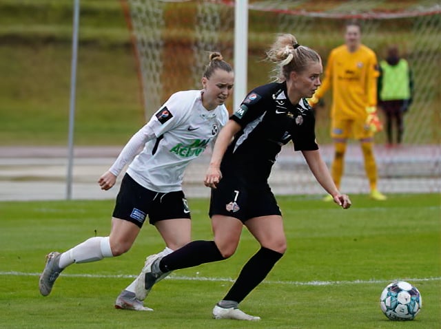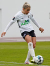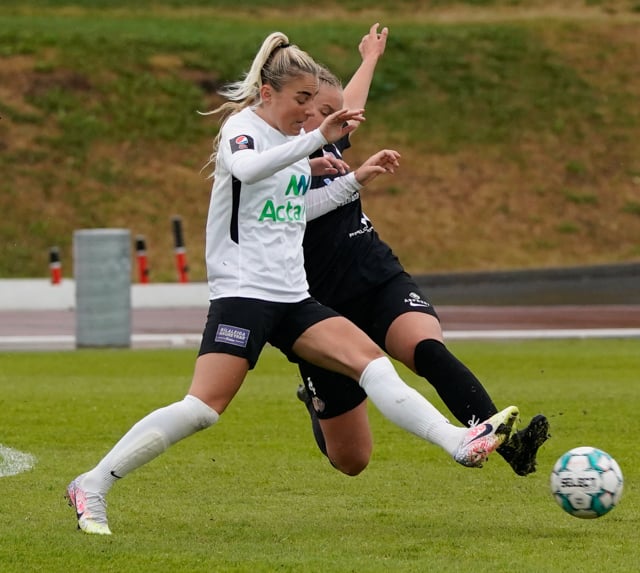Hulda Ósk með lagleg tilþrif og á sendingu á Berglindi sem á skot framhjá fjærstönginni.