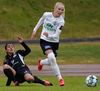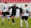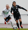 Maddy með sendingu á Huldu Ósk sem reynir Huldu Ósk special að komast framhjá nokkrum varnarmönnum og það tókst næstum.