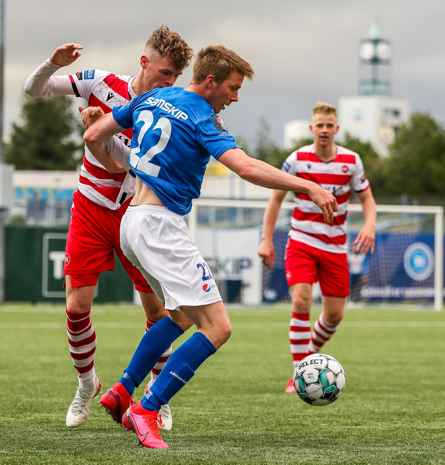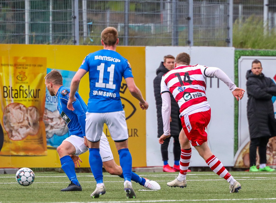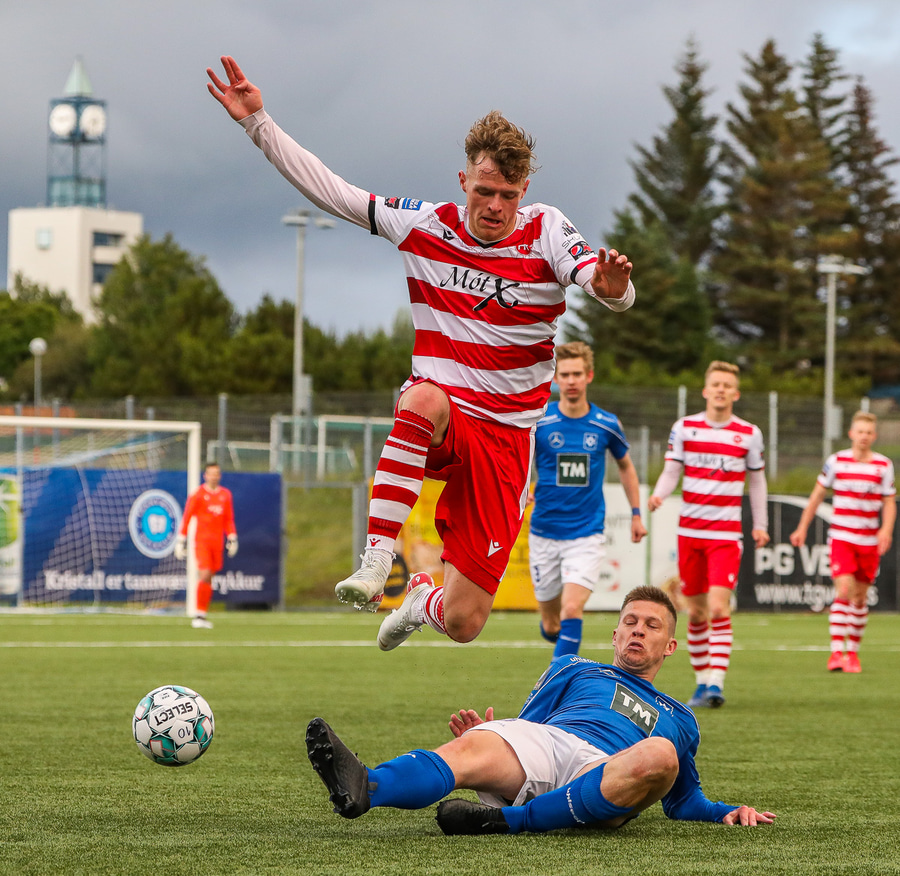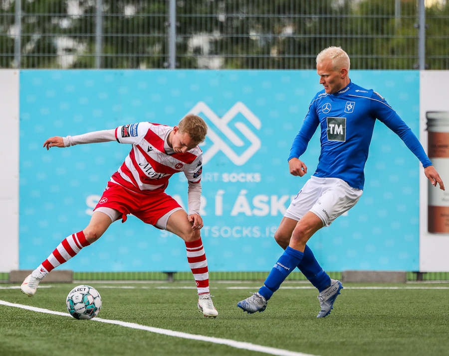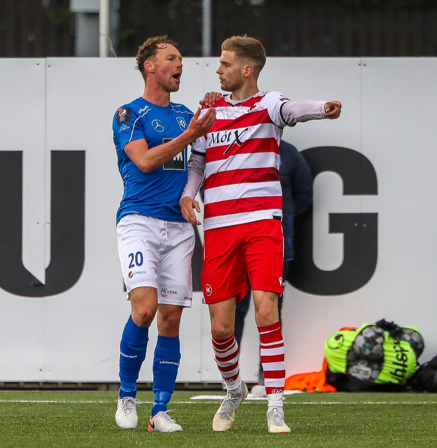 Hörður Árna fer illa með Þorstein Má og neglir boltanum svo yfir á Valgeir sem er 1v1 á Jósef, fer framhjá honum og fellur svo við en ekkert dæmt!