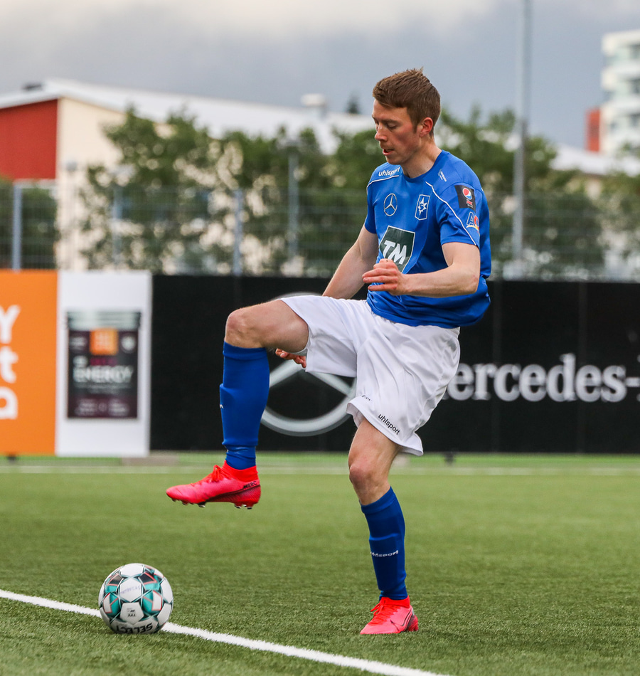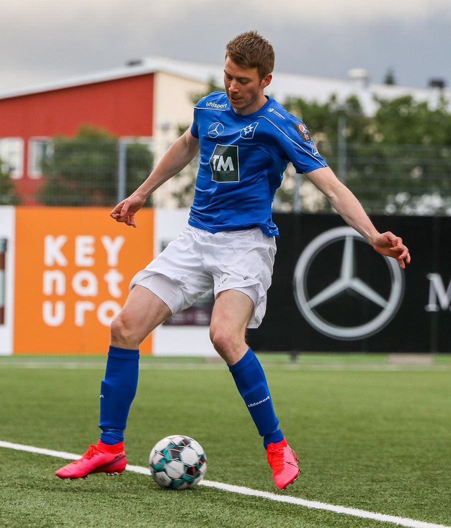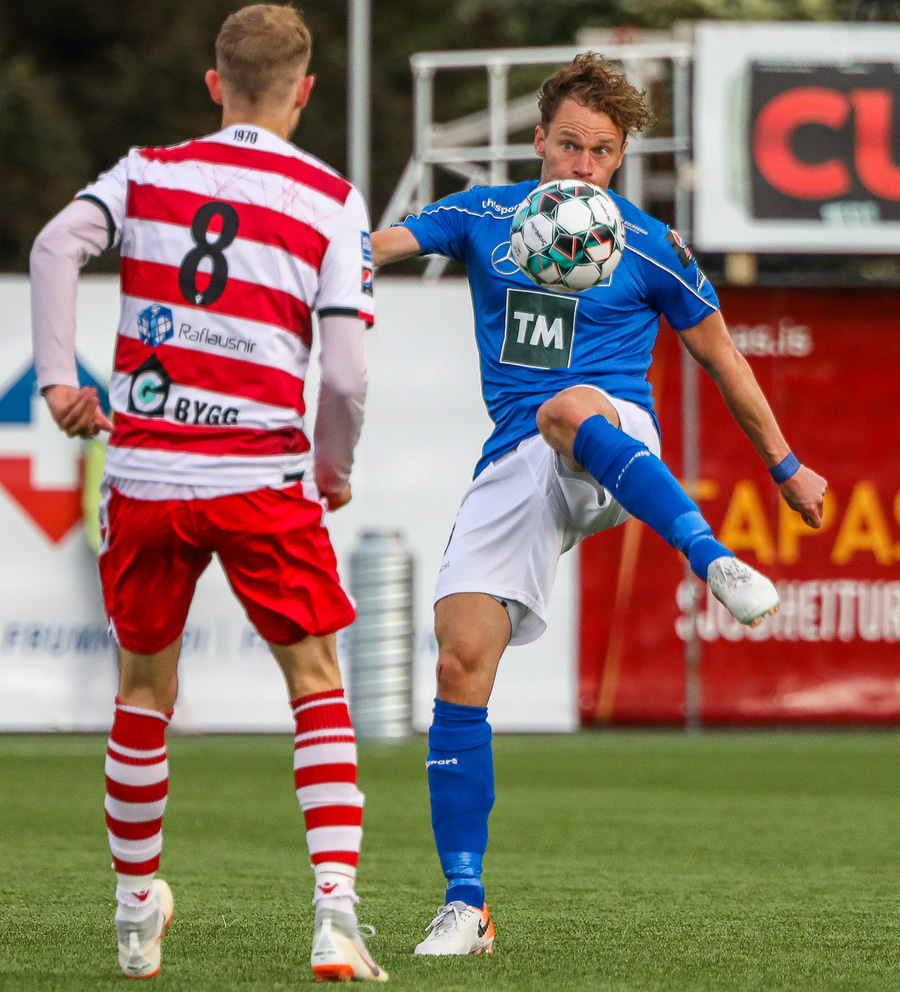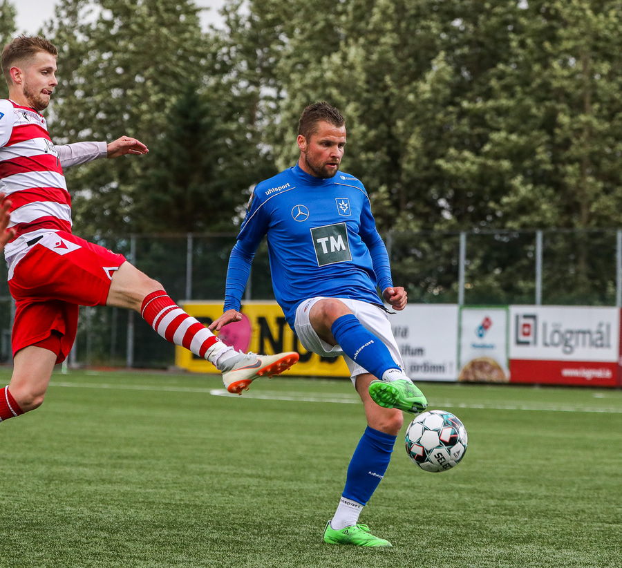Valgeir leggur boltann til hliðar fyrir Atla sem lætur vaða fyrir utan teig en boltinn yfir!