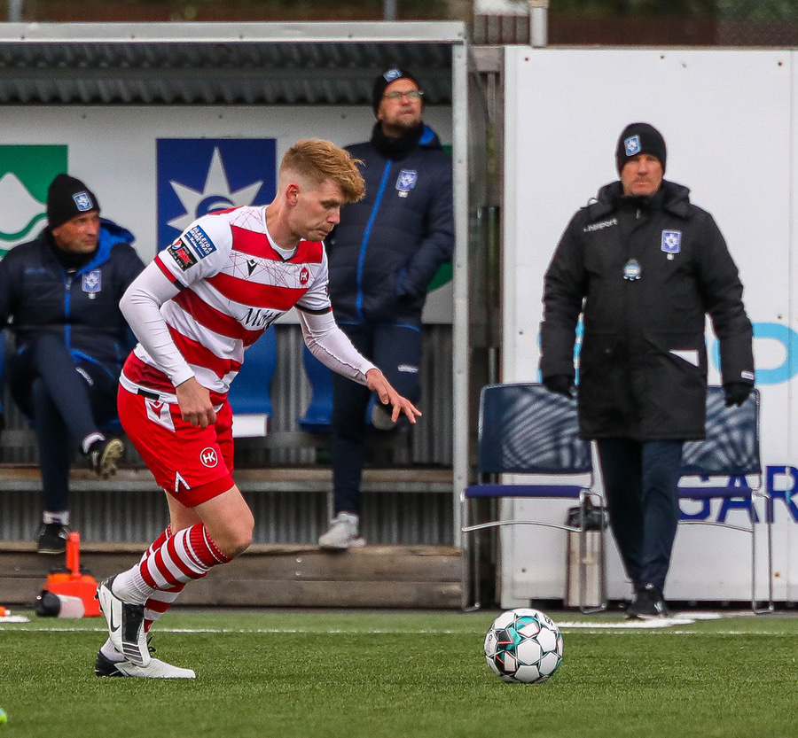 Halli kýlir hornspyrnu Bidda frá, Valgeir keyrir inn á teiginn og reynir að sóla menn og er sparkaður niður en boltinn rúllar til Harðar sem skorar!