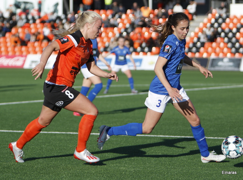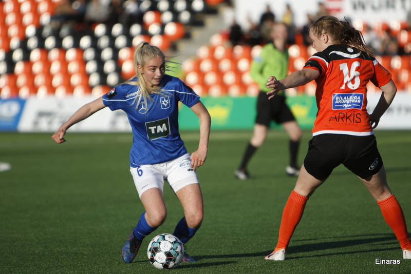Fylkir leiðir hér 1-0 í hálfleik eftir glæsimark frá Evu Rut.