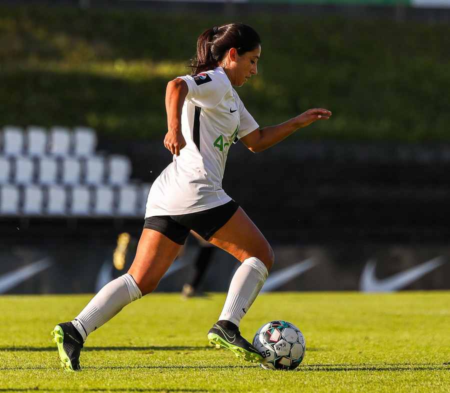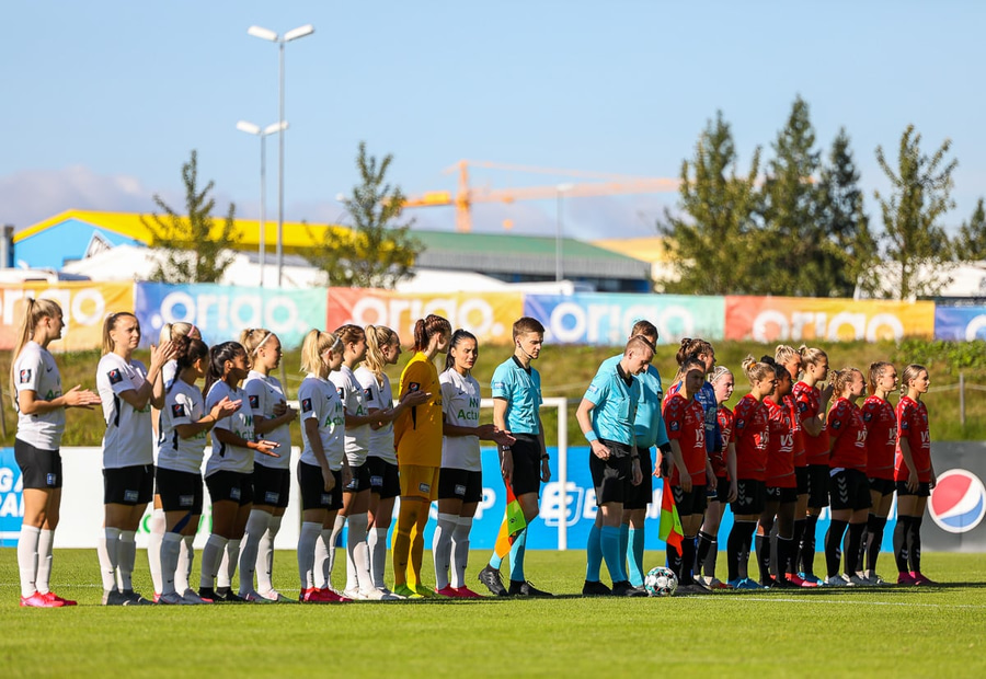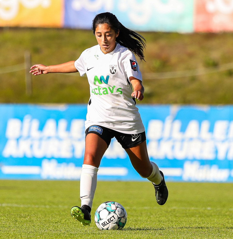 Fatma Kara með fyrsta skot leiksins. Nær að koma sér í ágætt færi á vinstri fyrir utan teig en hittir boltann illa og skotið laust og framhjá.