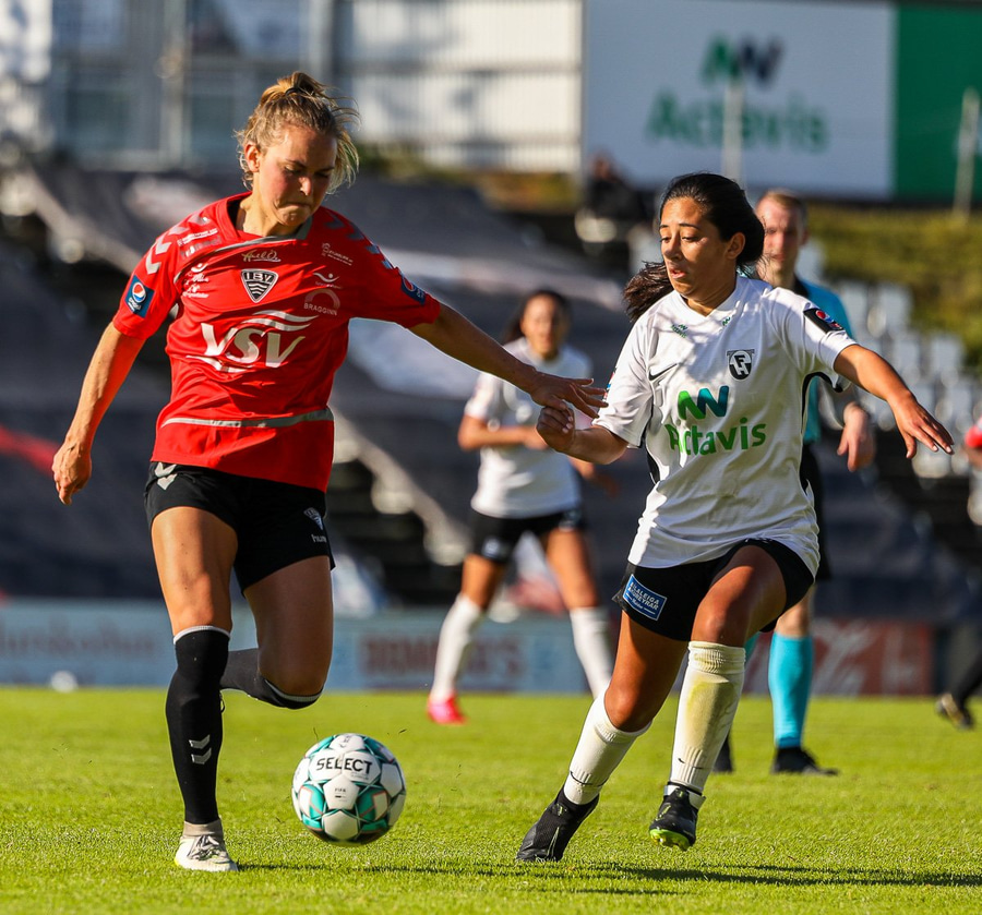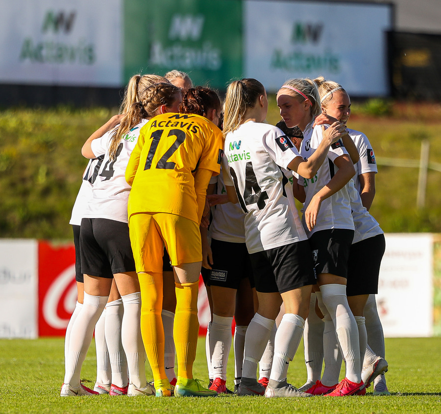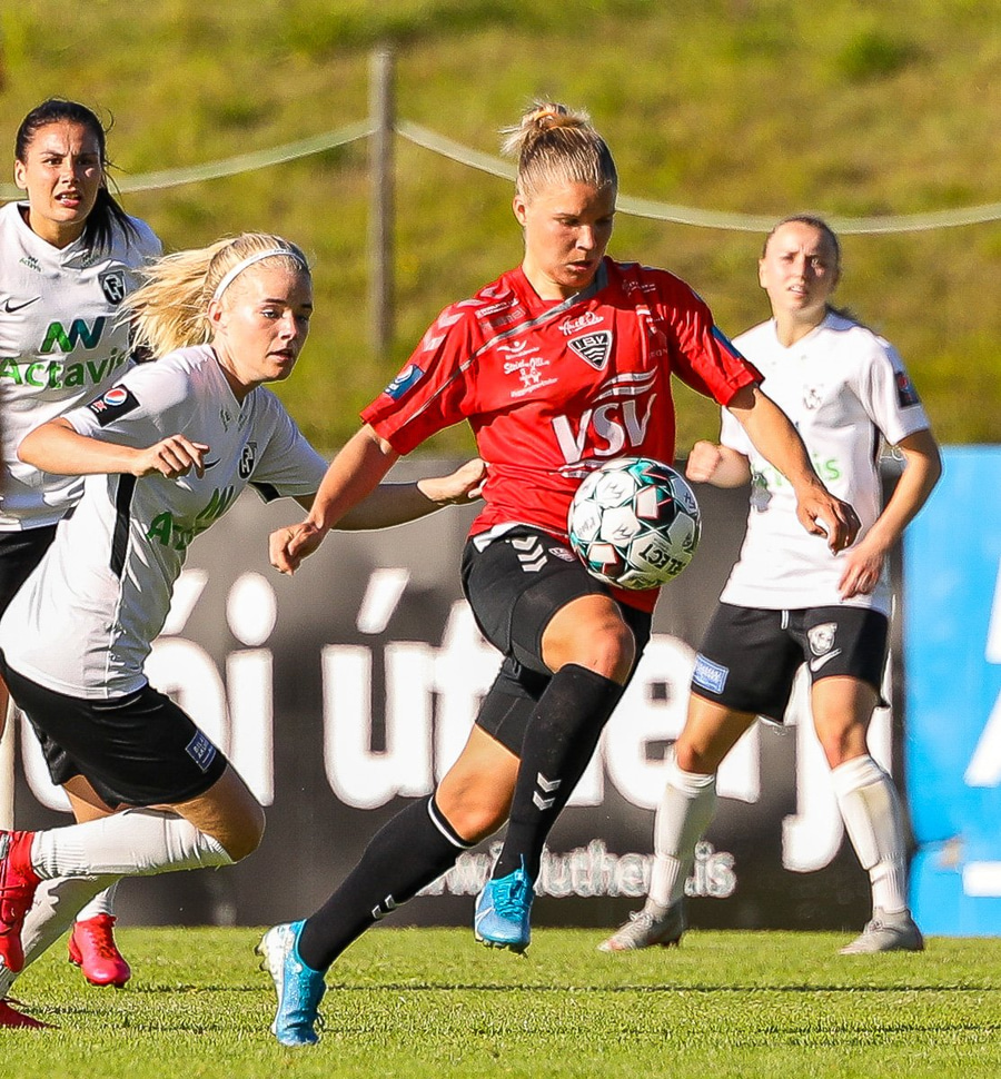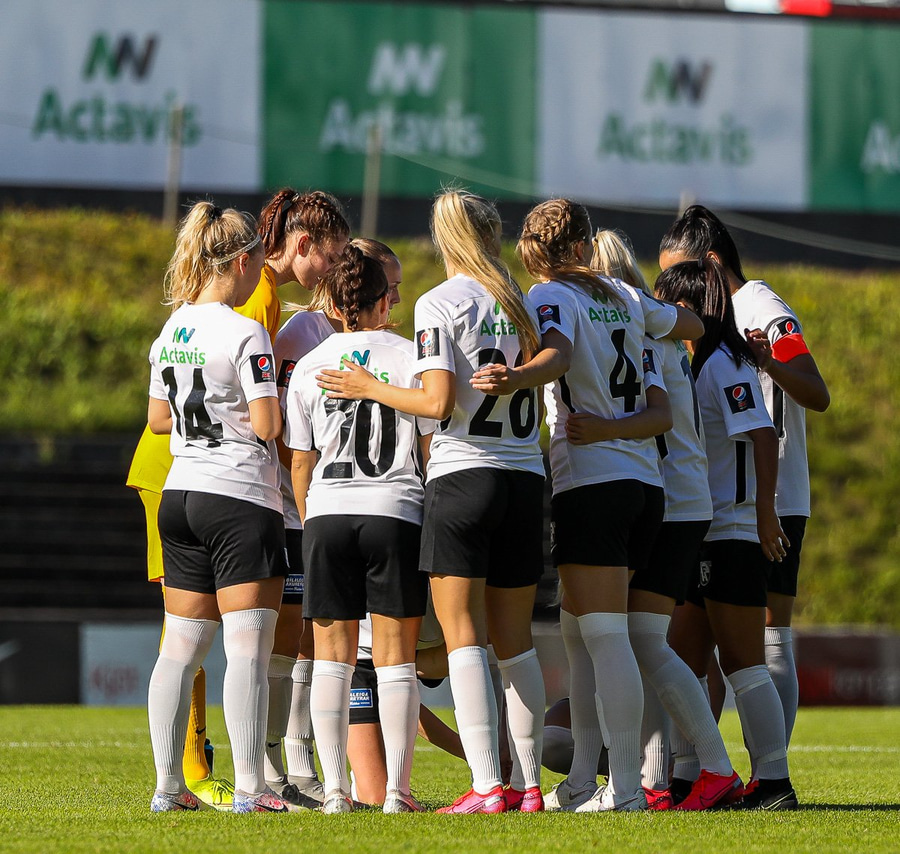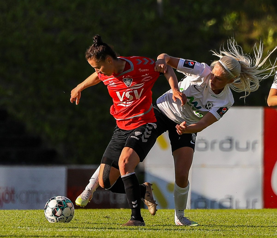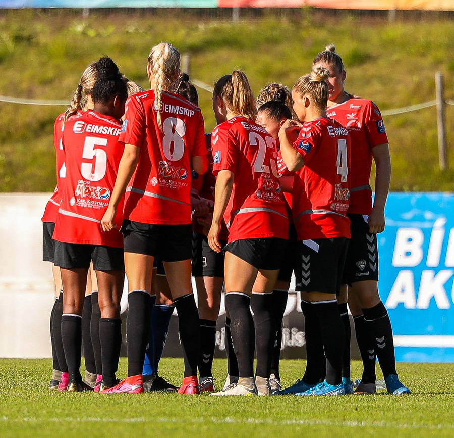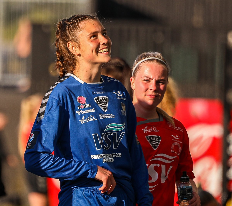 Klafs í ÍBV teignum og Rannveig reynir að ná skoti á markið en þarf að teygja sig og skotið fer í varnarmann og aftur fyrir. Hornspyrna.
