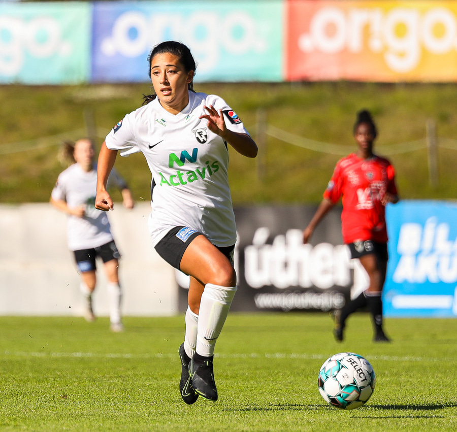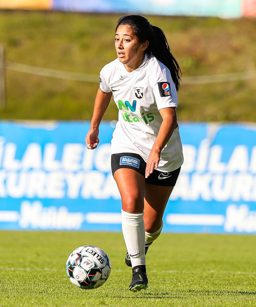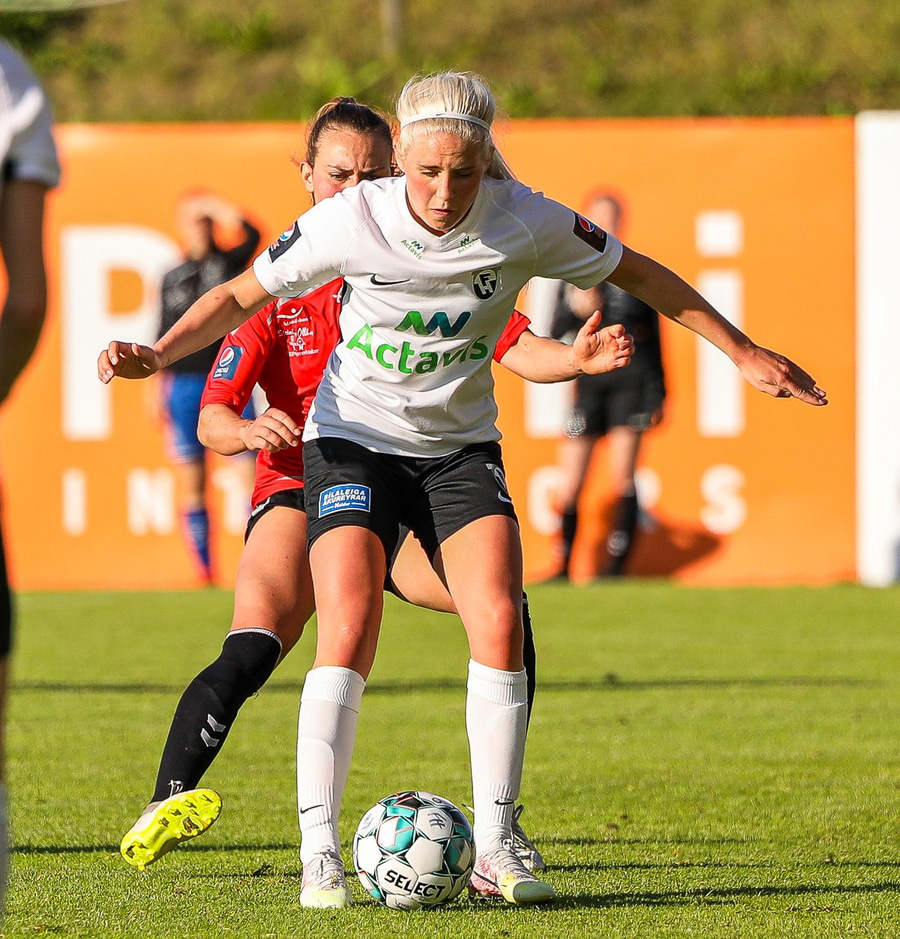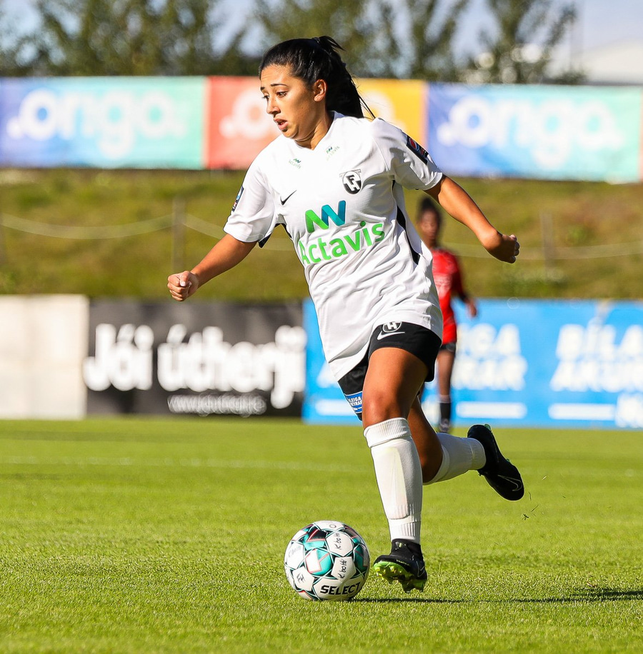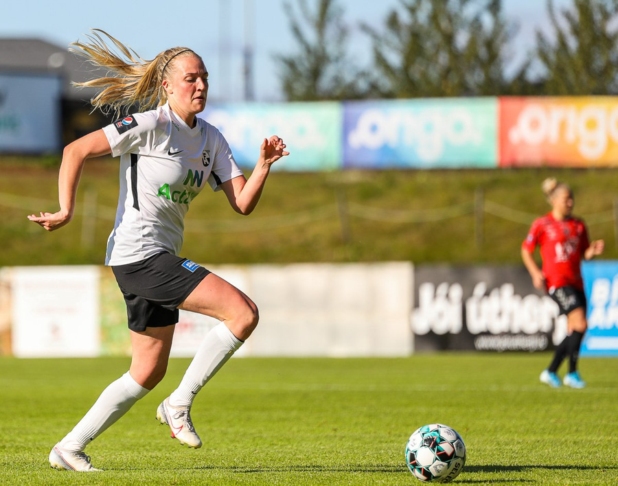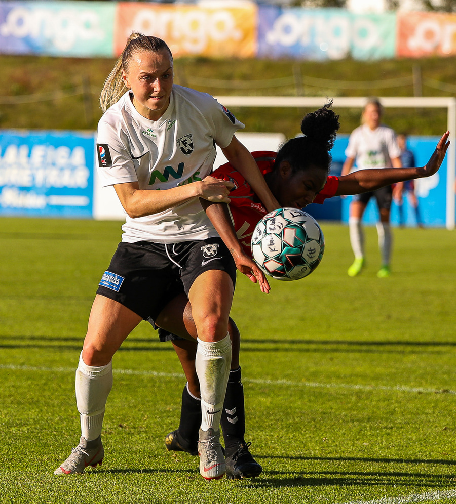 Olga fer upp vinstri kantinn og kemur boltanum fyrir markið þar sem Miyah Watford reynir að ná til hans en FH konur koma þessu frá.