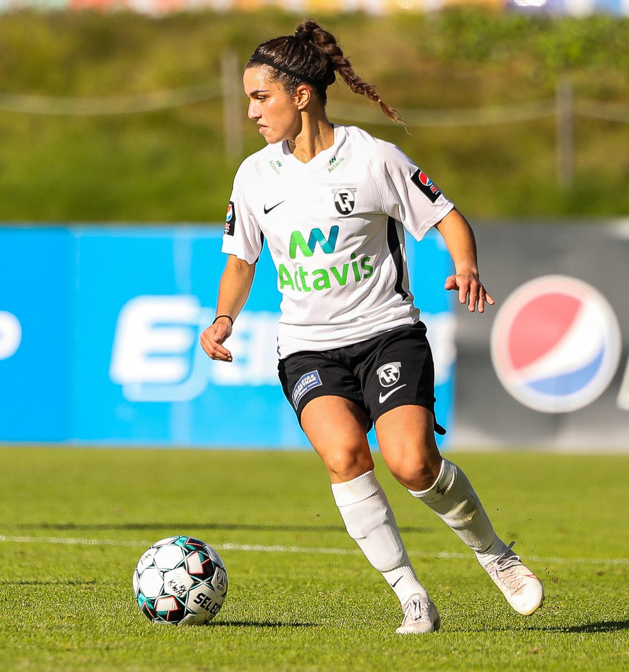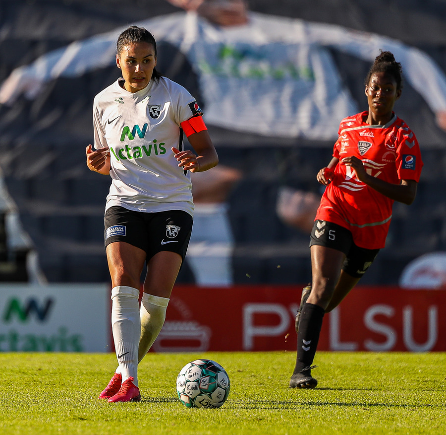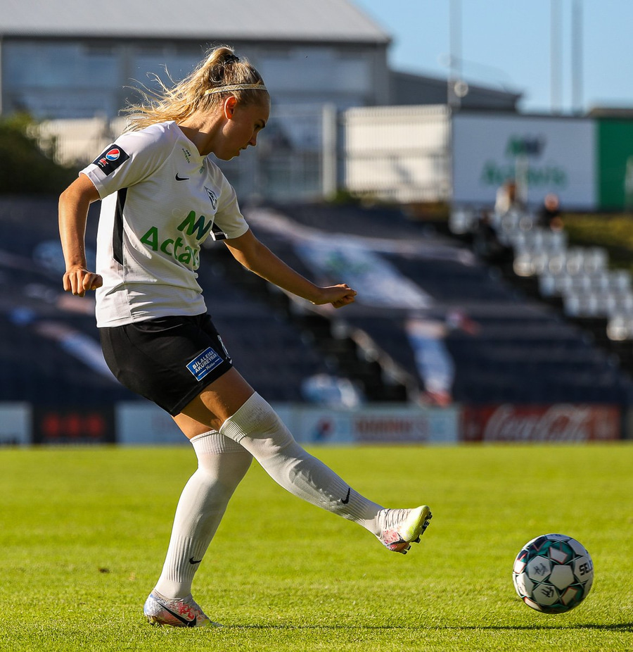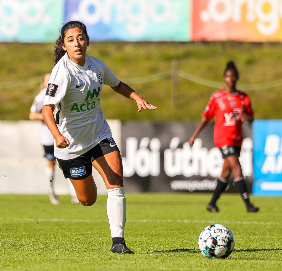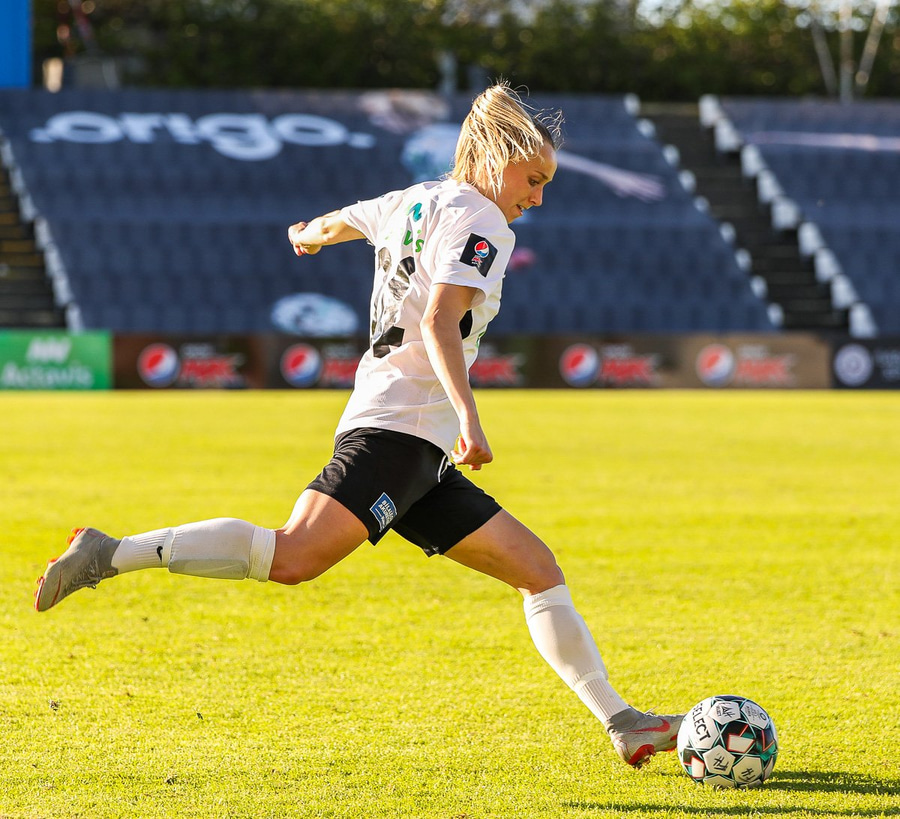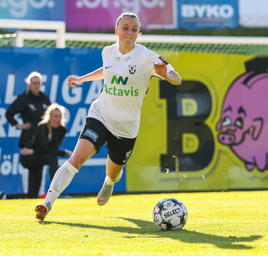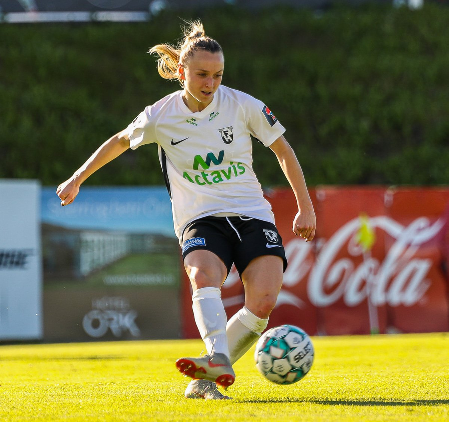 Olga fer upp vinstri kantinn og kemur boltanum fyrir markið þar sem Miyah Watford reynir að ná til hans en FH konur koma þessu frá.