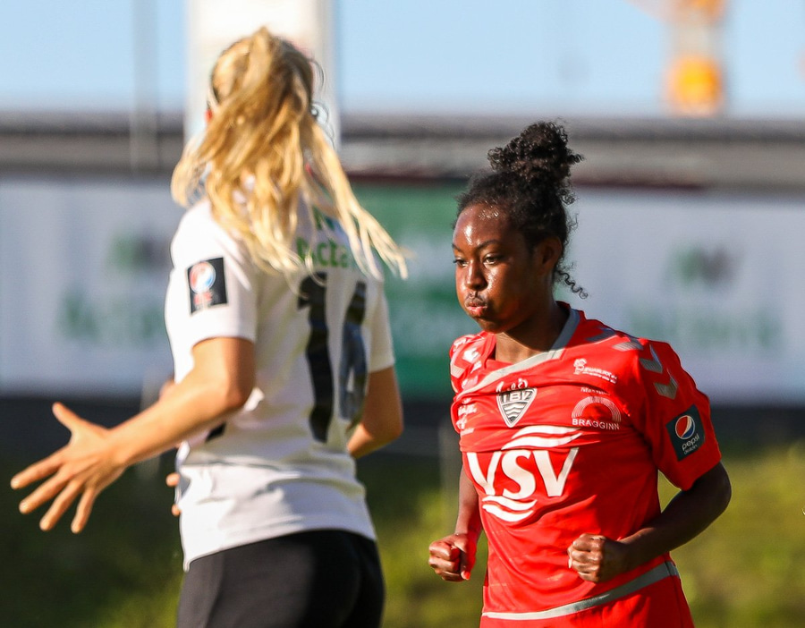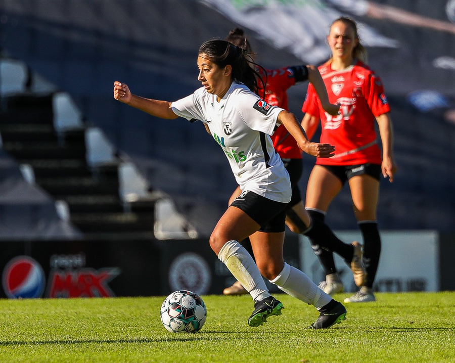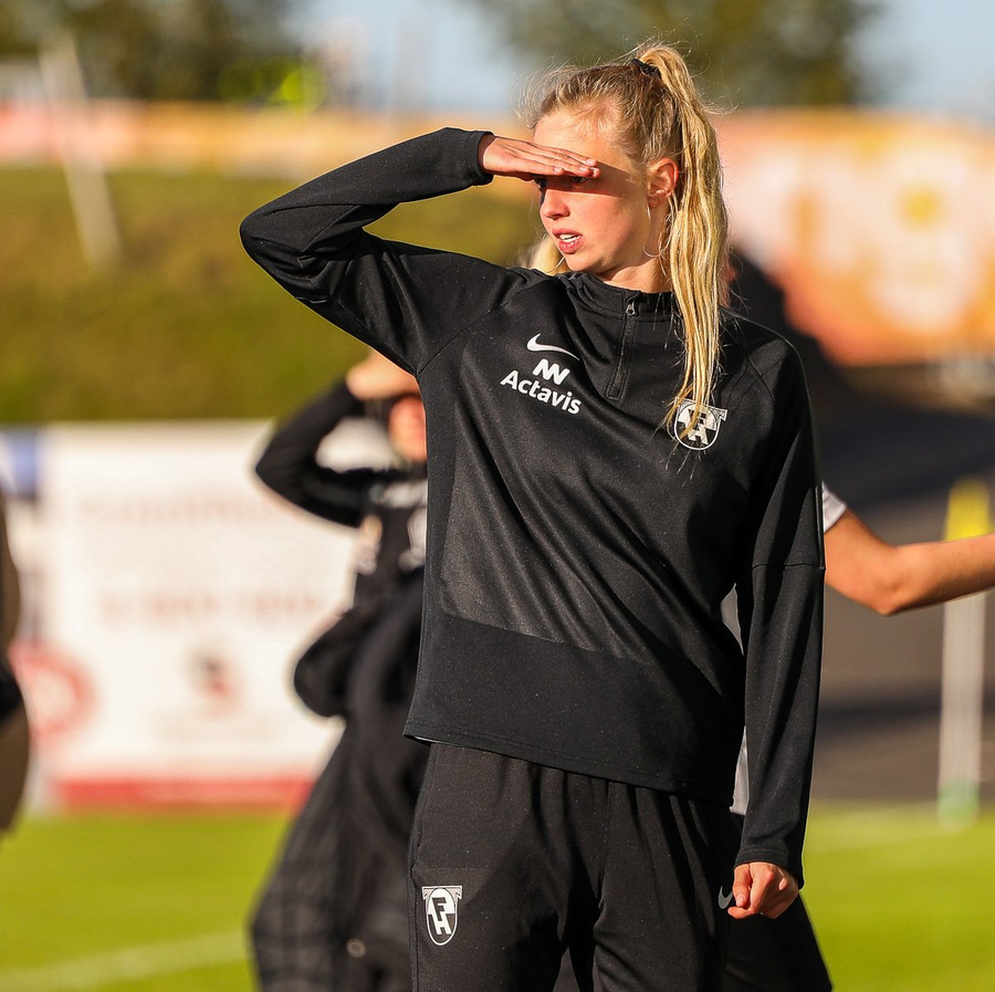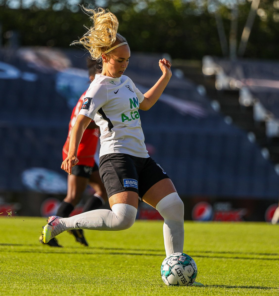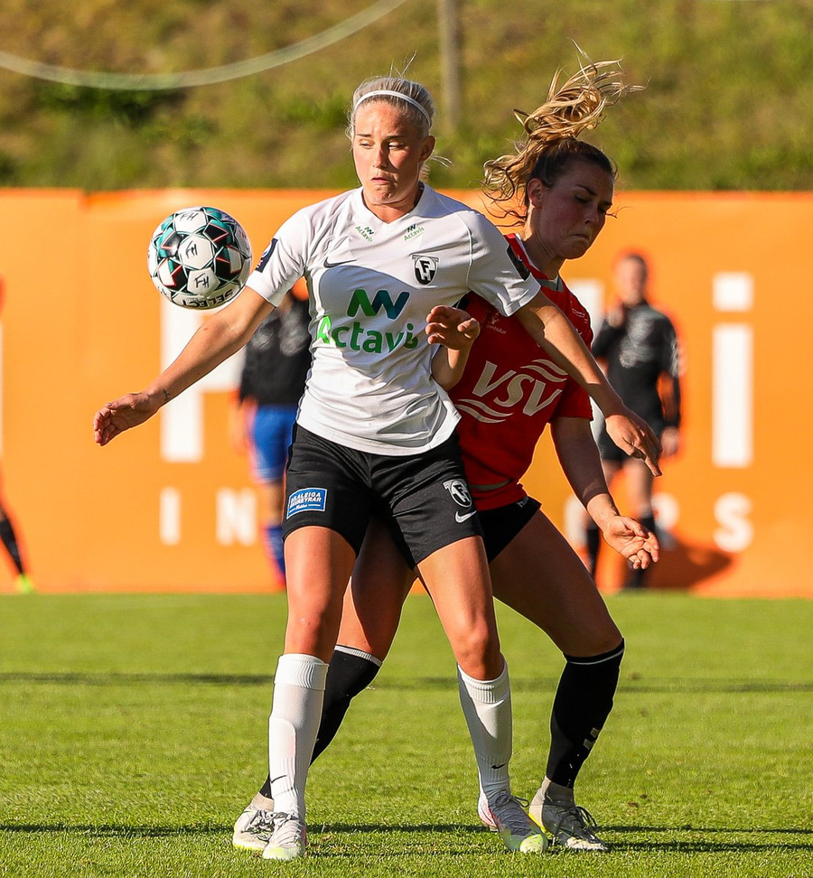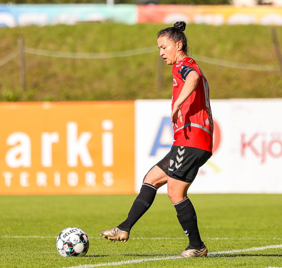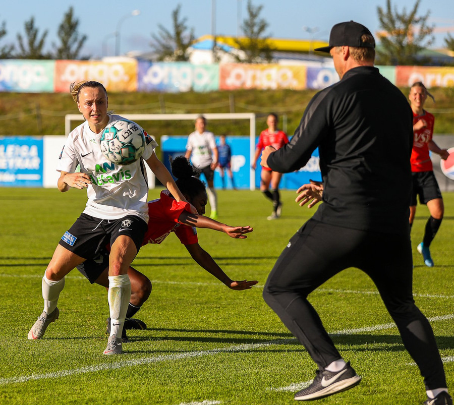 Olga fer upp vinstri kantinn og kemur boltanum fyrir markið þar sem Miyah Watford reynir að ná til hans en FH konur koma þessu frá.