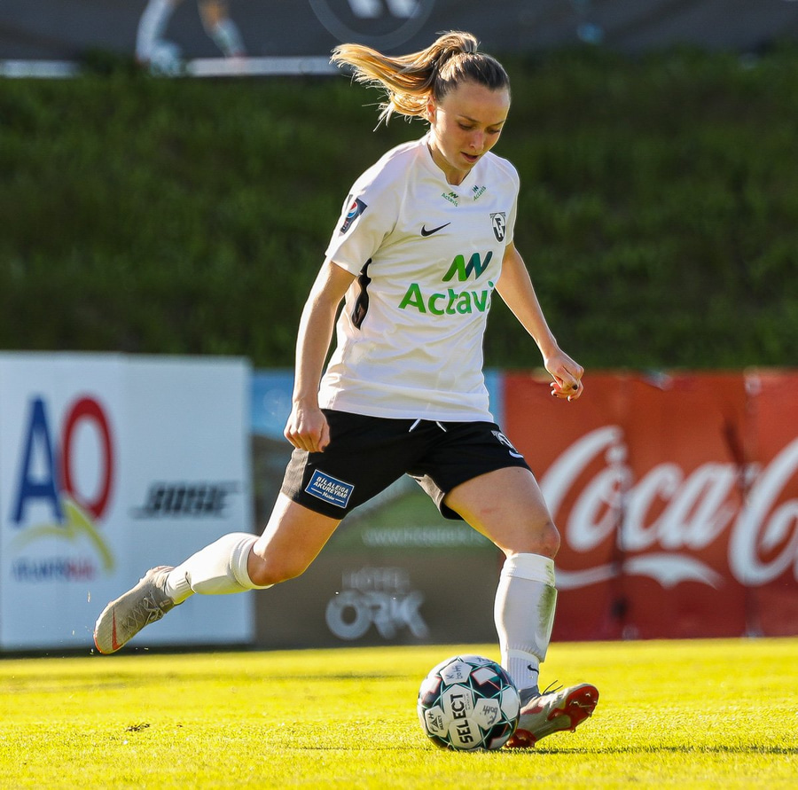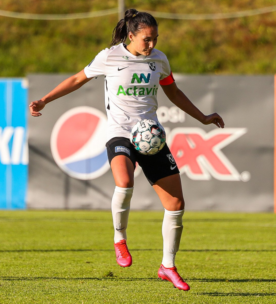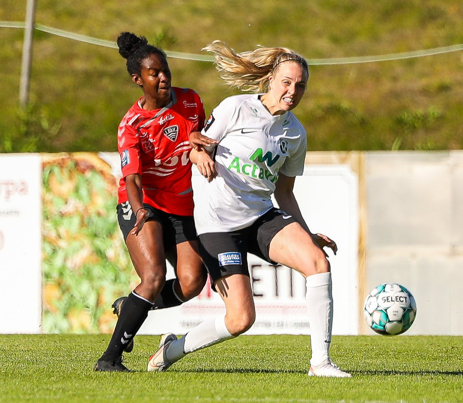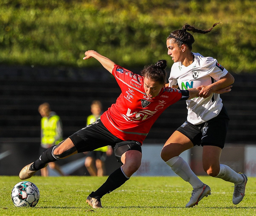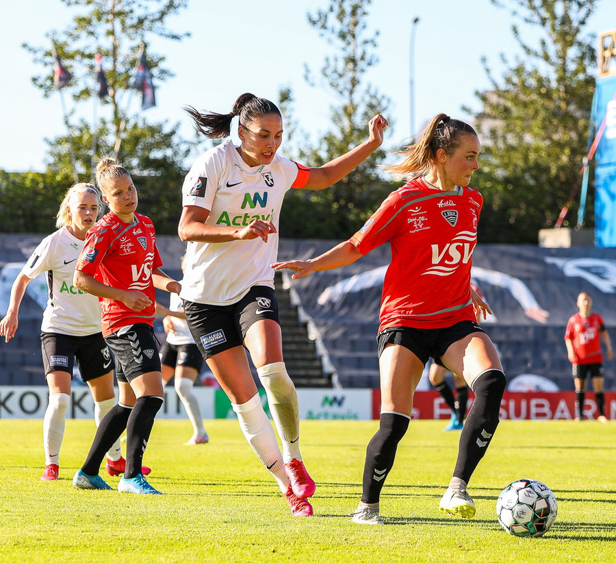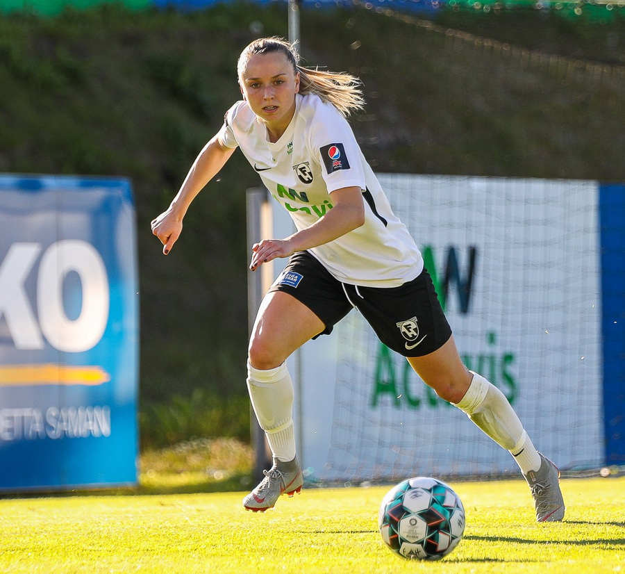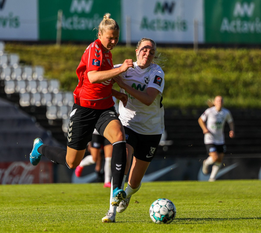 Olga fer upp vinstri kantinn og kemur boltanum fyrir markið þar sem Miyah Watford reynir að ná til hans en FH konur koma þessu frá.