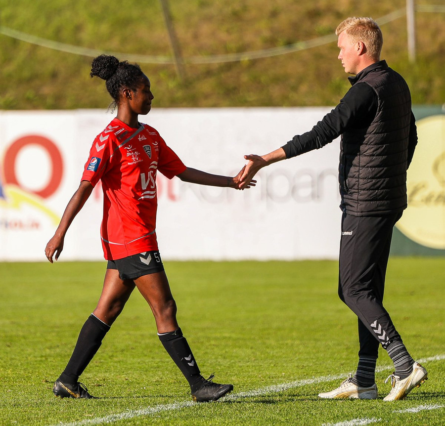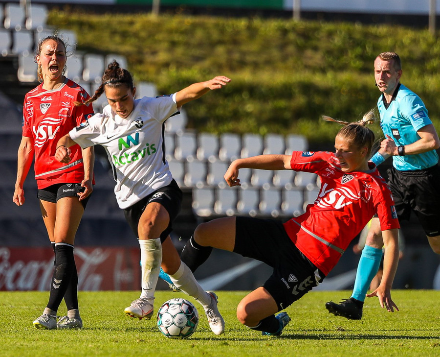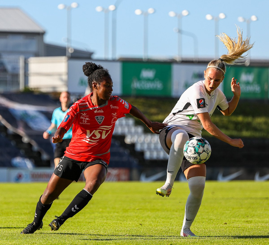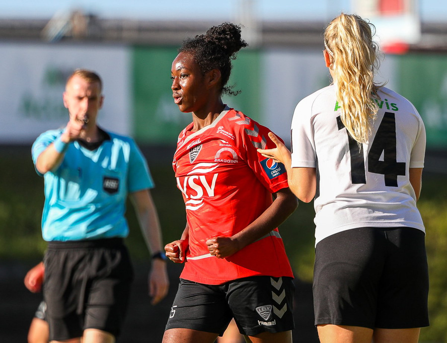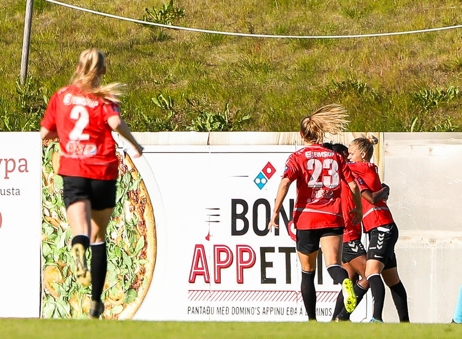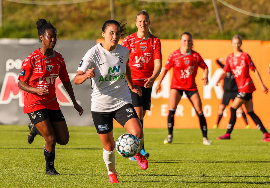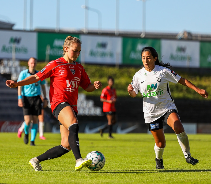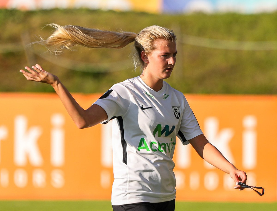 Olga fer upp vinstri kantinn og kemur boltanum fyrir markið þar sem Miyah Watford reynir að ná til hans en FH konur koma þessu frá.