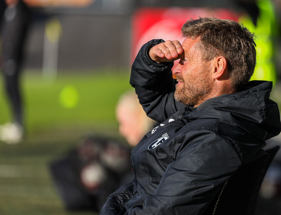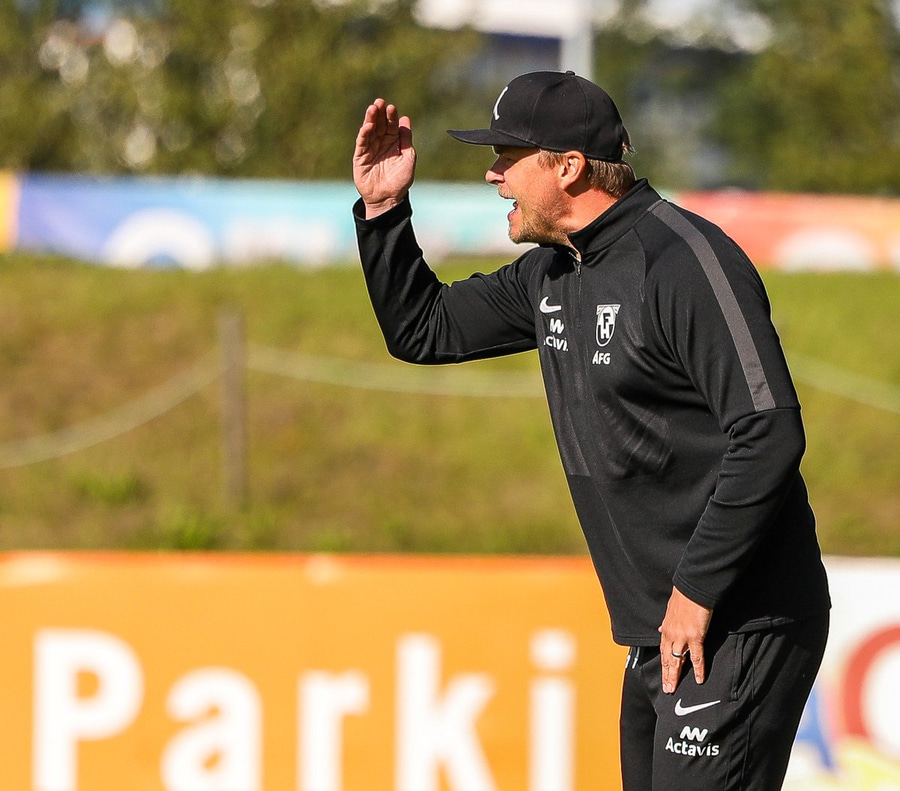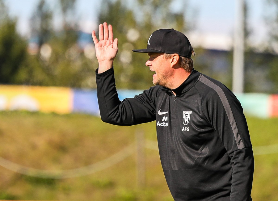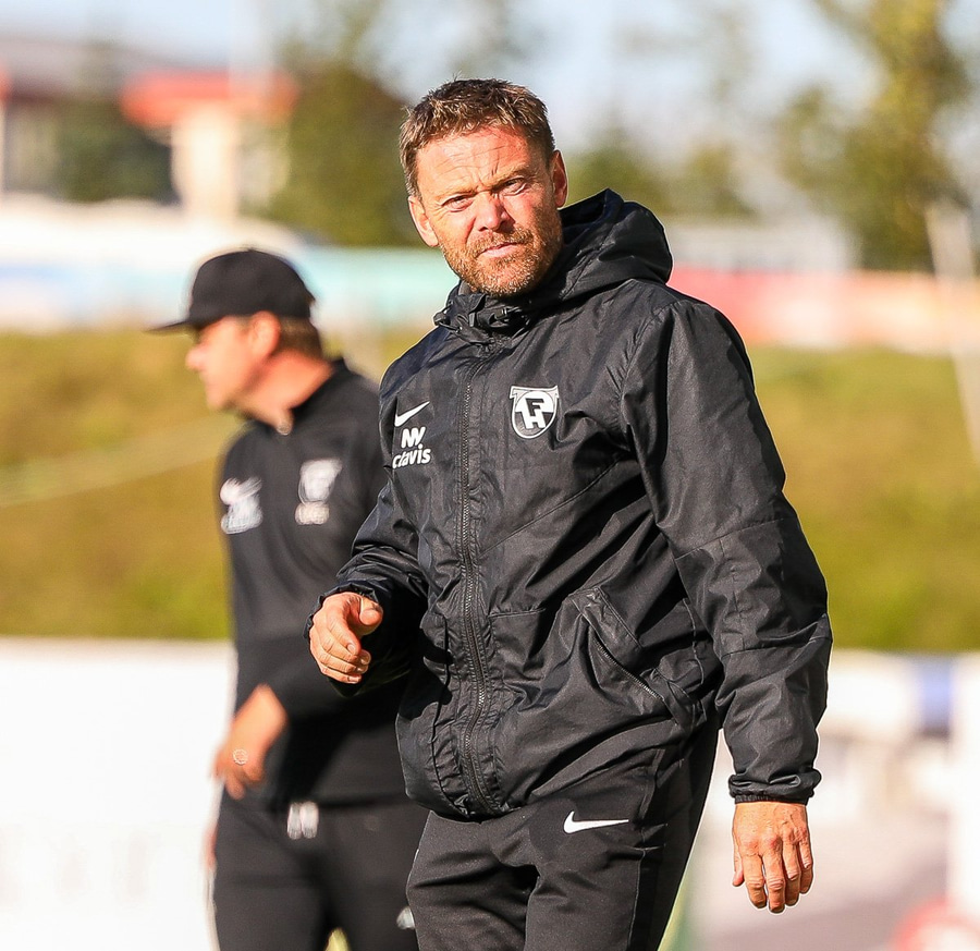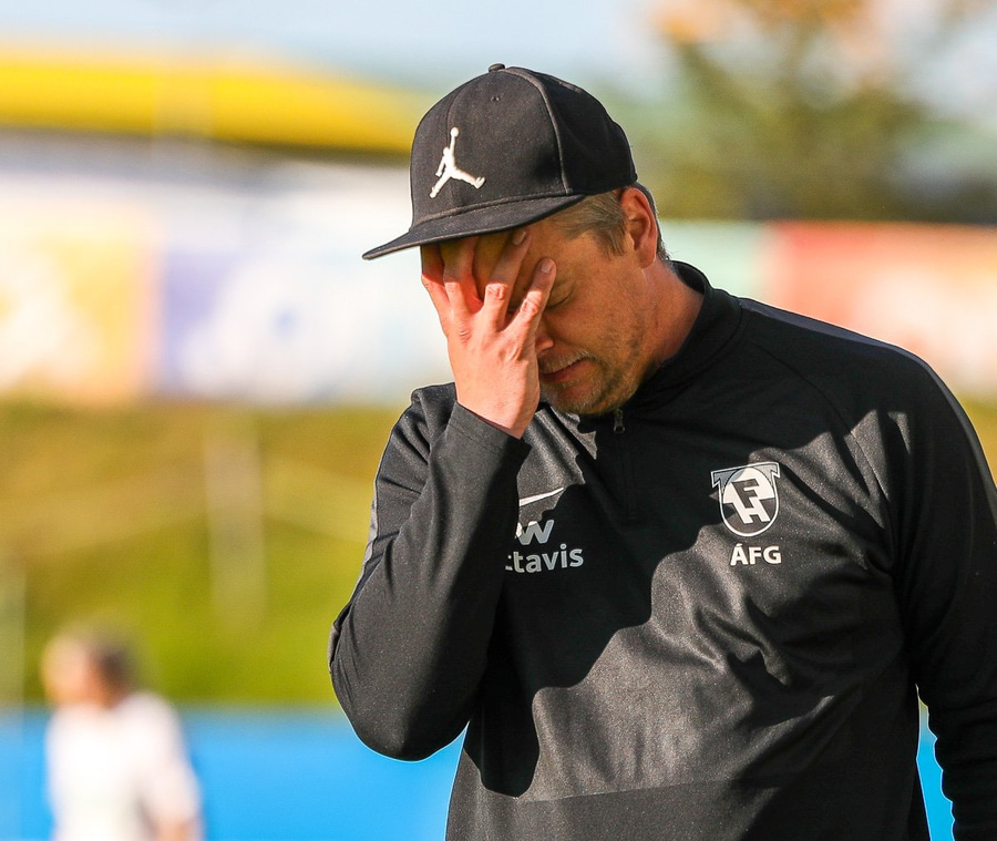 Árni þjálfari FH er brjálaður á línunni. Lætur dómaratríóið heyra það af fullum hálsi.