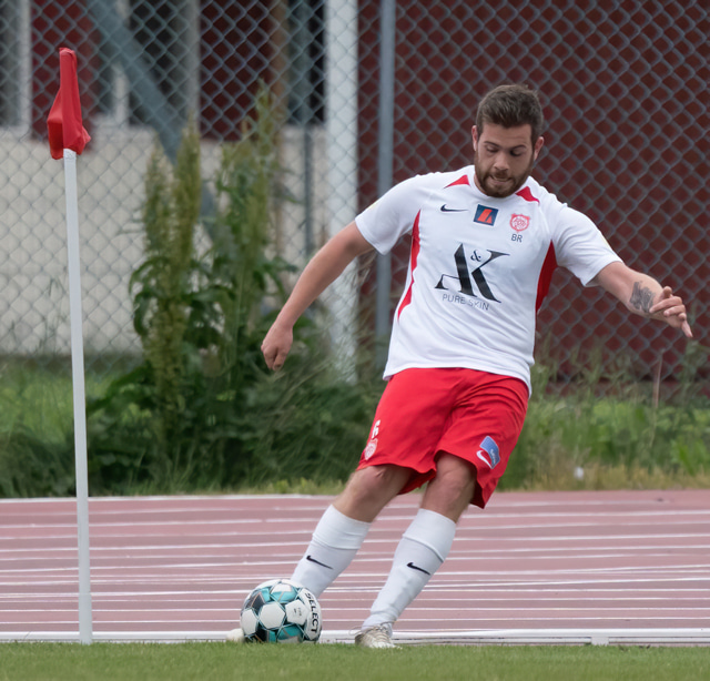 Ólafur Aron tekur aukaspyrnu úti vinstra megin.