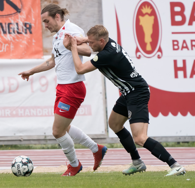 Alvaro setti pressu á Stubb og náði að setja Stubb í vandræði en Stubbur fljótur niður og handsamar boltann.