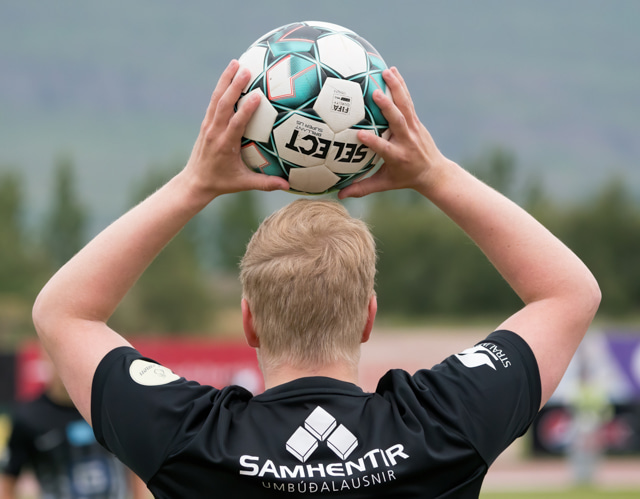 Jónas fær boltann í sig inn á teignum og Þórsarar fá svo innkast.