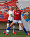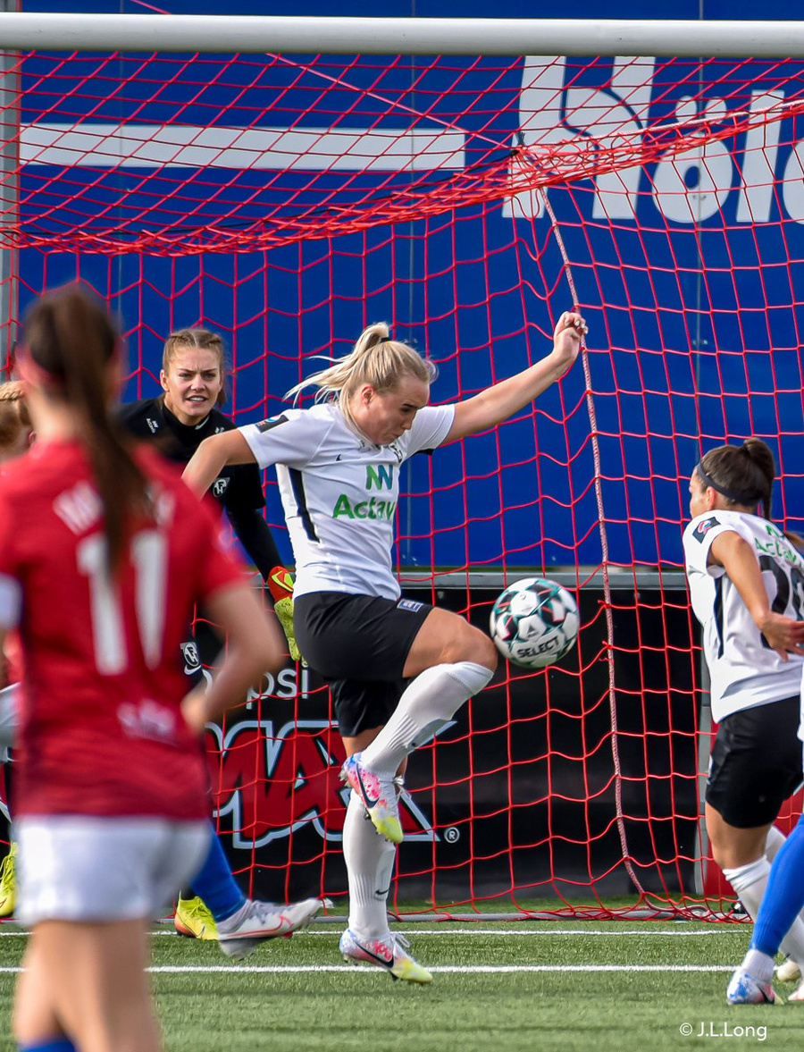Helena leit út fyrir að vera að komast í fínt færi eftir að fá sendingu inn fyrir vörnina en dæmd rangstæð