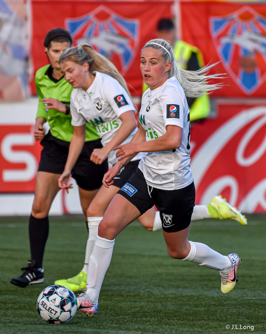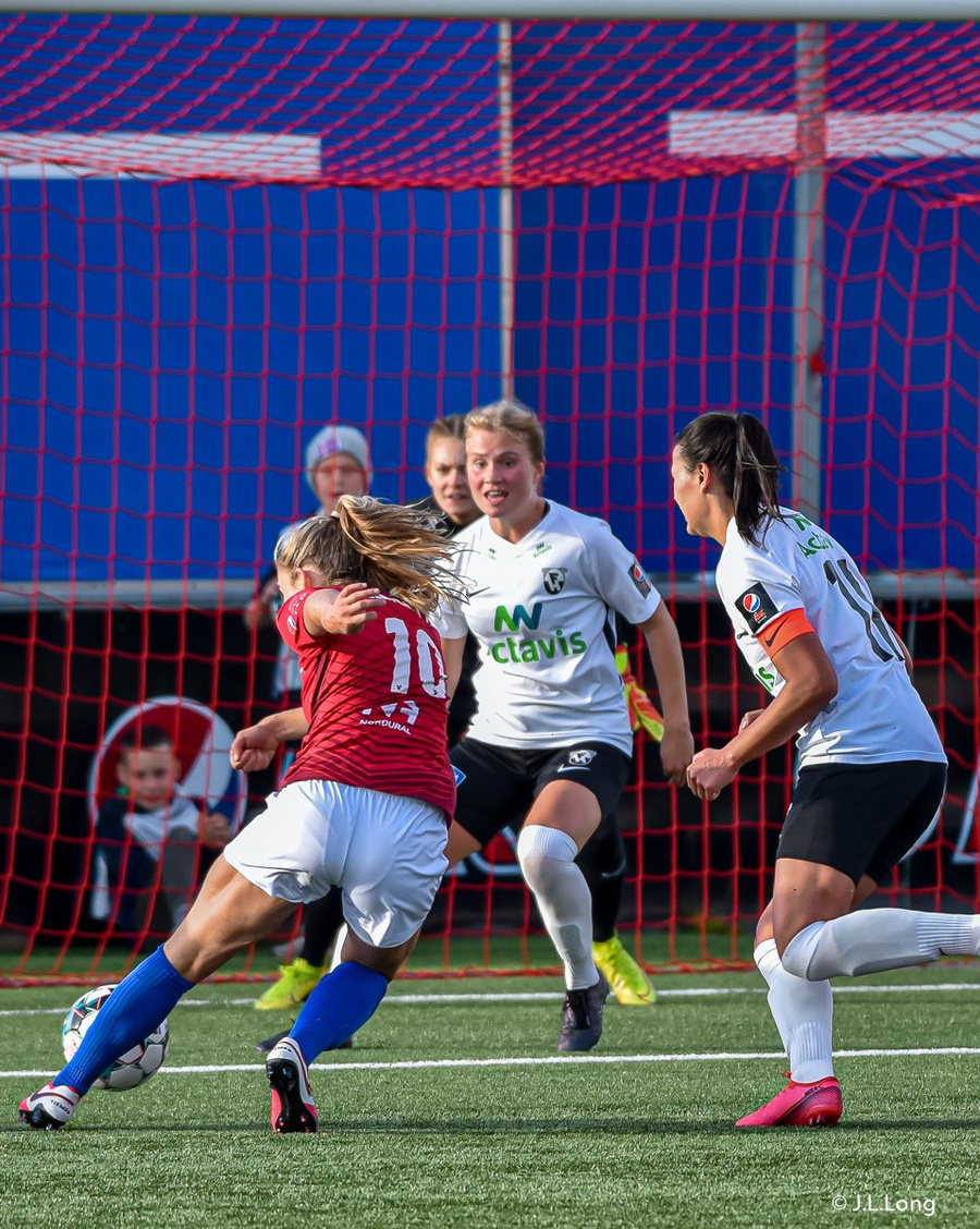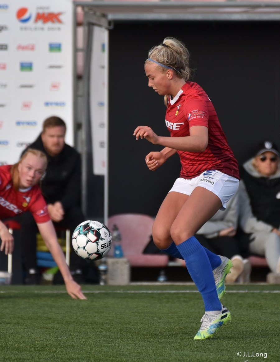 Hlín með fínan sprett upp völlinn og gefur hann út á Ásdísi sem skýtur fram hjá.
