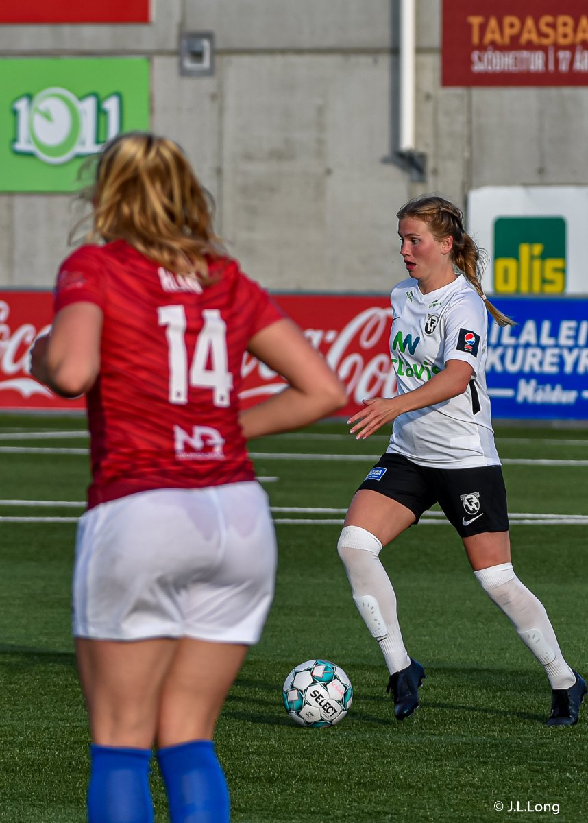 Elín Metta fór á fullri ferð upp kantinn en Ingibjörg mætir henni. Elín Metta reynir að leika á hana en Ingibjörg sparkar boltanum í Elínu og aftur fyrir.