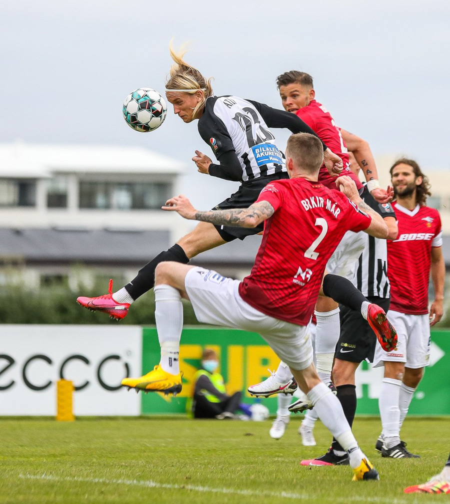 MARK!Há sending inn í teiginn, Valgeir Lunddal skallar boltann frá og Kennie tekur hann á lofti og setur í hornið!