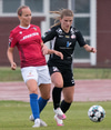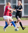 Hulda Ósk nálægt því að fá boltann í gegn en Sandra vel vakandi og mætir út á móti.