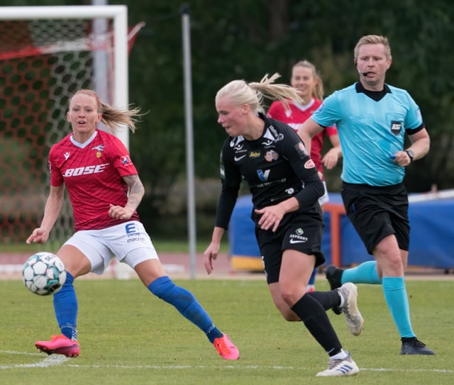 Hallbera með frábæra fyrirgjöf sem Bergdís, sem skipti um kant við Hlín, skallar yfir á fjærstönginni.