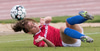 Lauren mætir út á móti stungusendingu en nær ekki að handsama knöttinn en hættan varð engin.