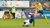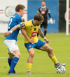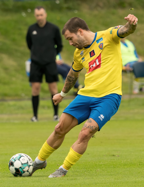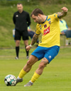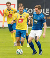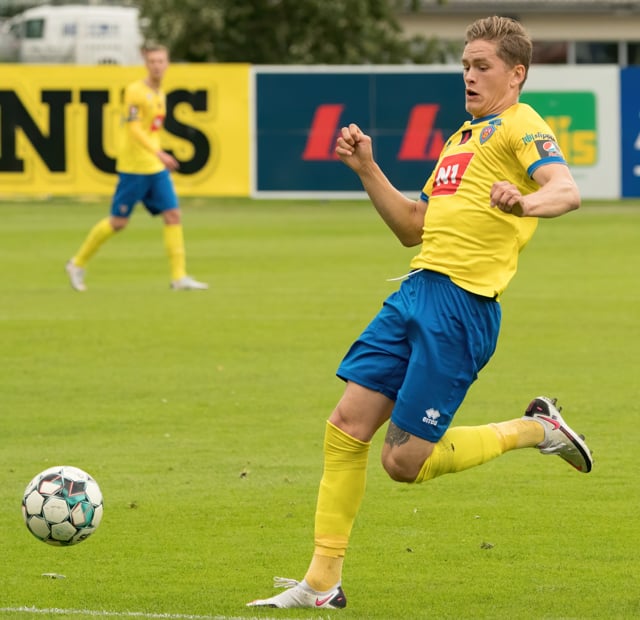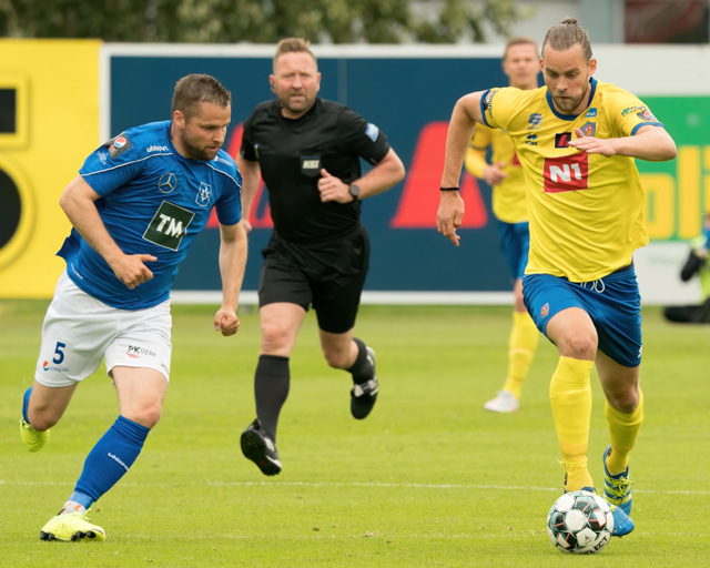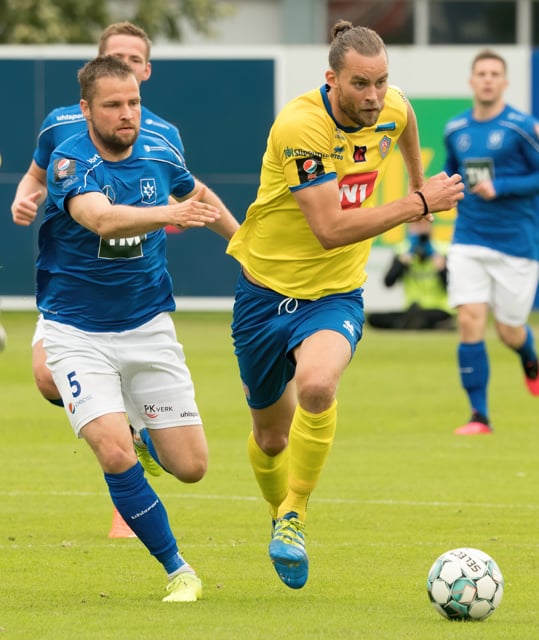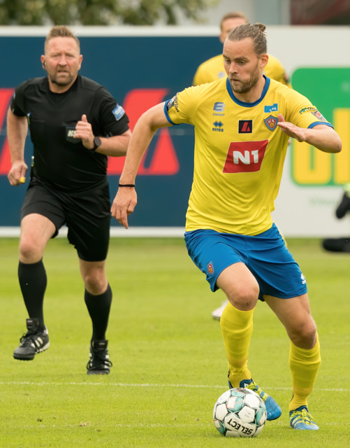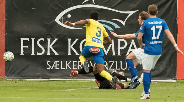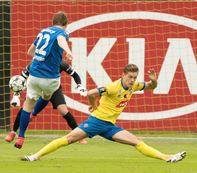 Flott spil hjá Jósef og Emil. Jósef nær fyrirgjöfinni sem Qvist nær að komast fyrir áður en Guðjón kemst í boltann.