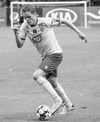 Alex missir boltann á vondum. Guðmundur nær til boltans en sendingin afskaplega léleg inn á Bjarna sem var við það að sleppa í gegn.