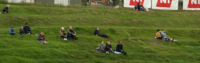 Aðstæður: 18 stiga hiti, skýjað og logn
