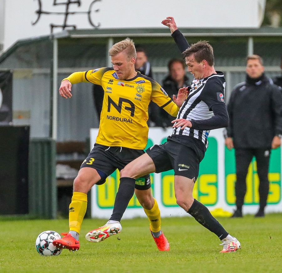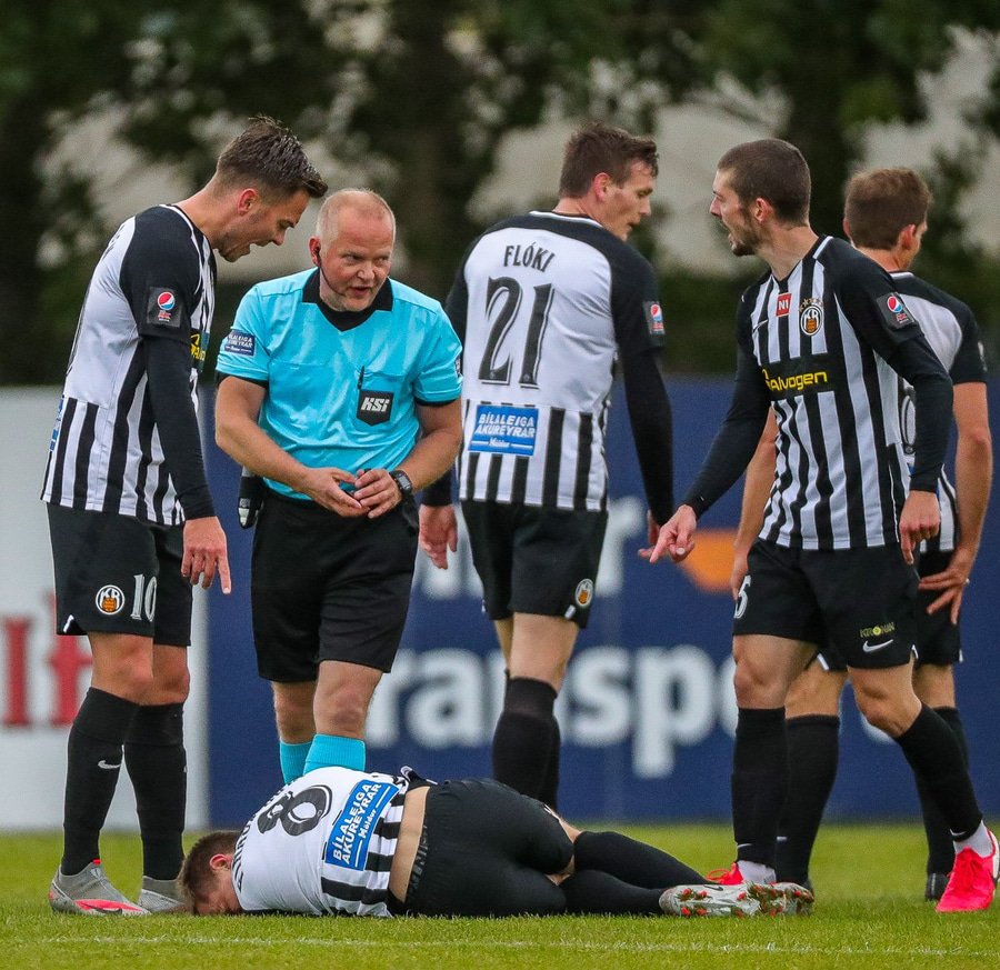 Felldi Ísak Snæ á miðjum vellinum en mér fannst þetta ansi ódýrt spjald.