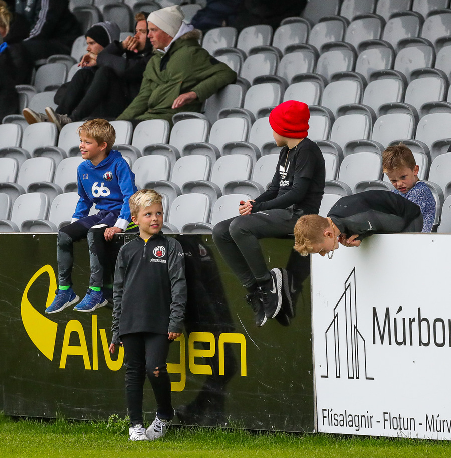 Nú munar engu að Stefán Teitur jafni leikinn, Steinar með góðan bolta meðfram jörðinni fyrir markið og Kiddi Jóns bjargar því á lokastundu að Stefán poti boltanum í markið.