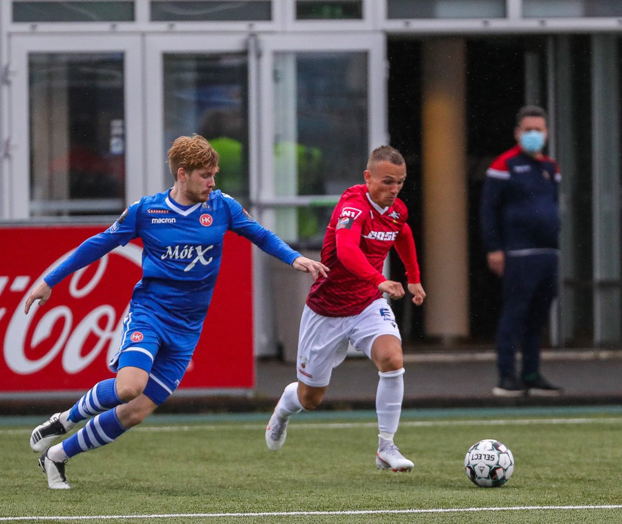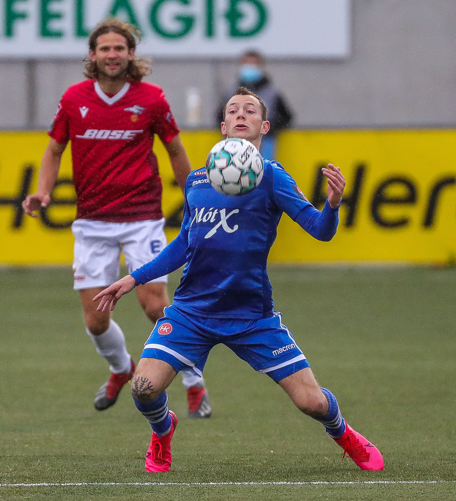 HK beint upp og vinna aukaspyrnu utan teigs í skotfæri fyrir Ívar.