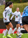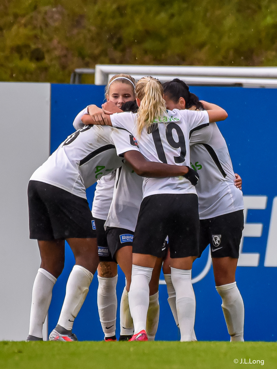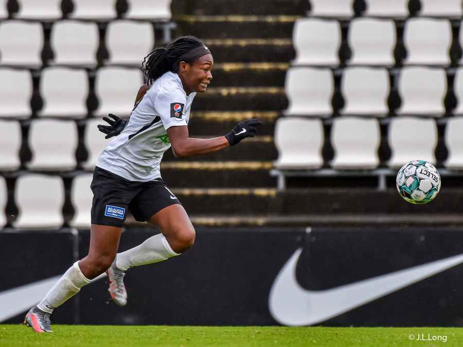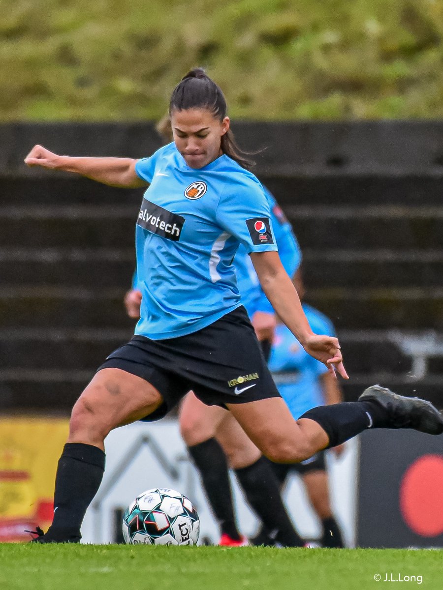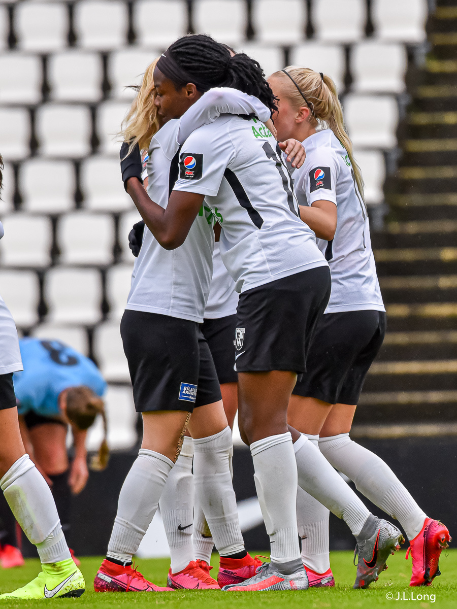 Valgerður með langan bolta inn á Phoenetiu sem klárar laglega í hægra hornið og það lifnar verulega yfir stúkunni