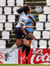 KR fær aukaspyrnu á hættulegum stað, rétt fyrir utan teig hægra megin. Þórdís Hrönn tekur spyrnuna og ákveður bara að skjóta en boltinnn fer rétt yfir markið. Fín tilraun