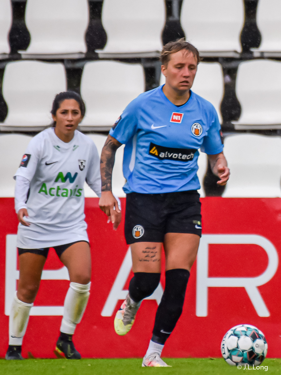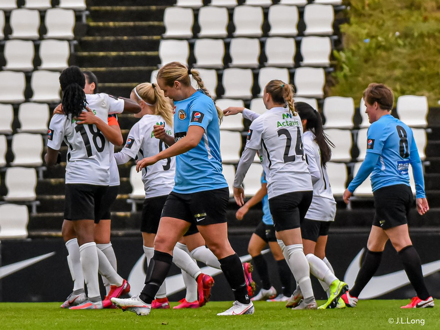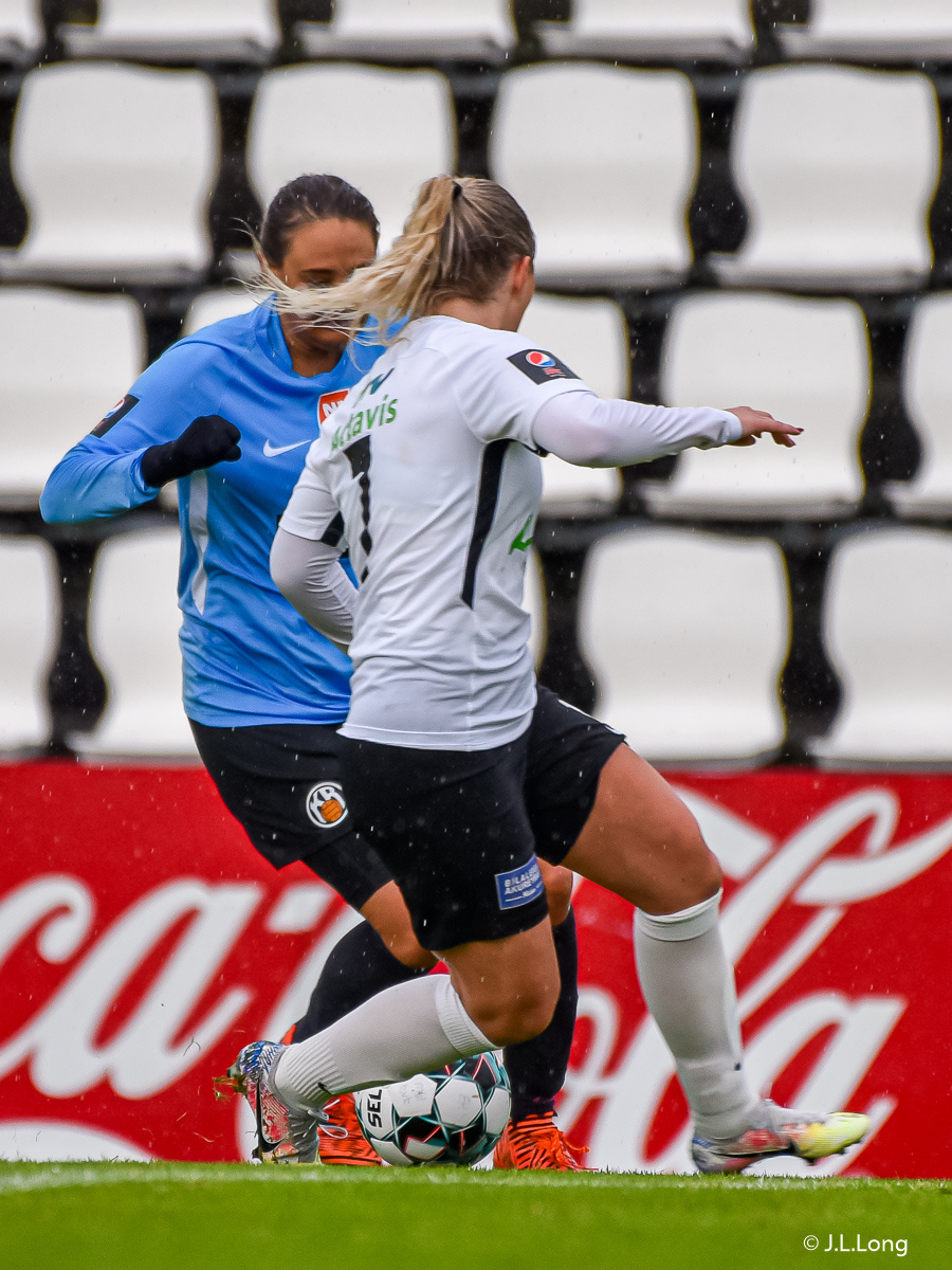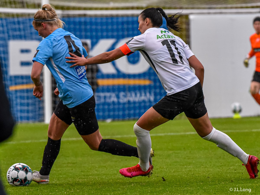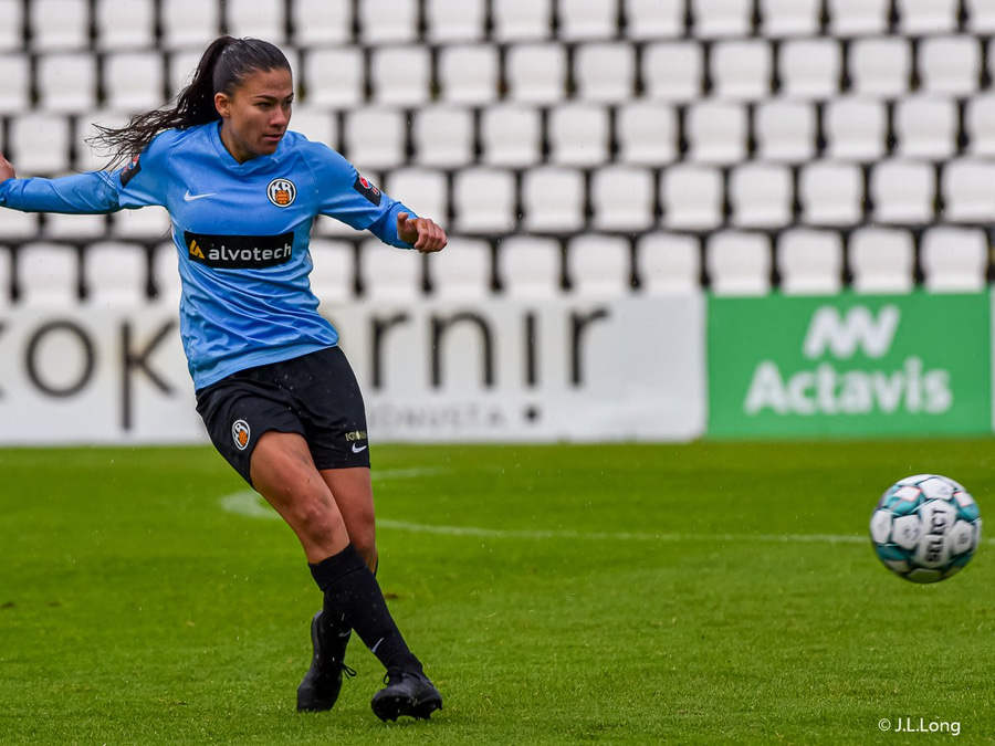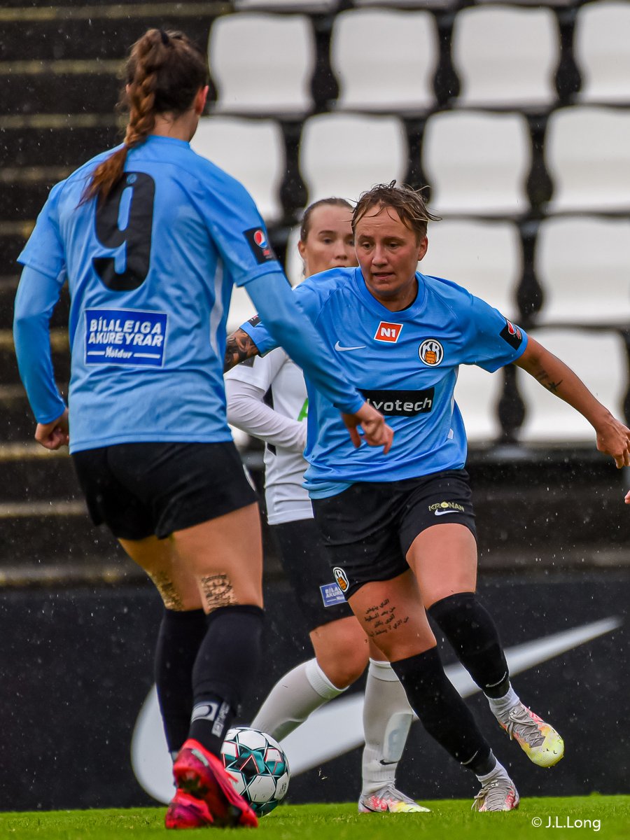 Þær hafa verið sterkari aðilinn hér í fyrri hálfleik og átt nokkur fín færi. Þær settu í 6. gír í nokkrar mínútur um miðjan hálfleik og uppskáru þá 2 mörk og dauðafæri.