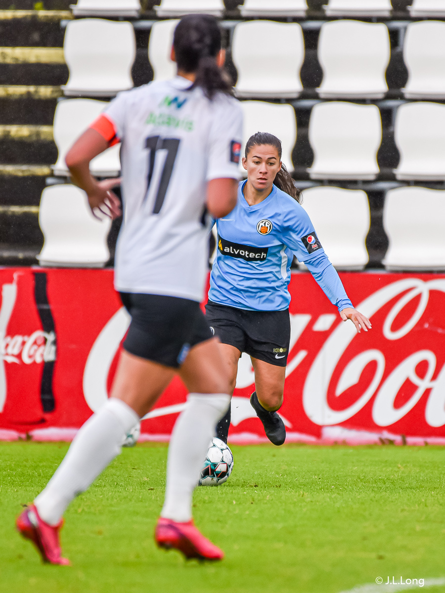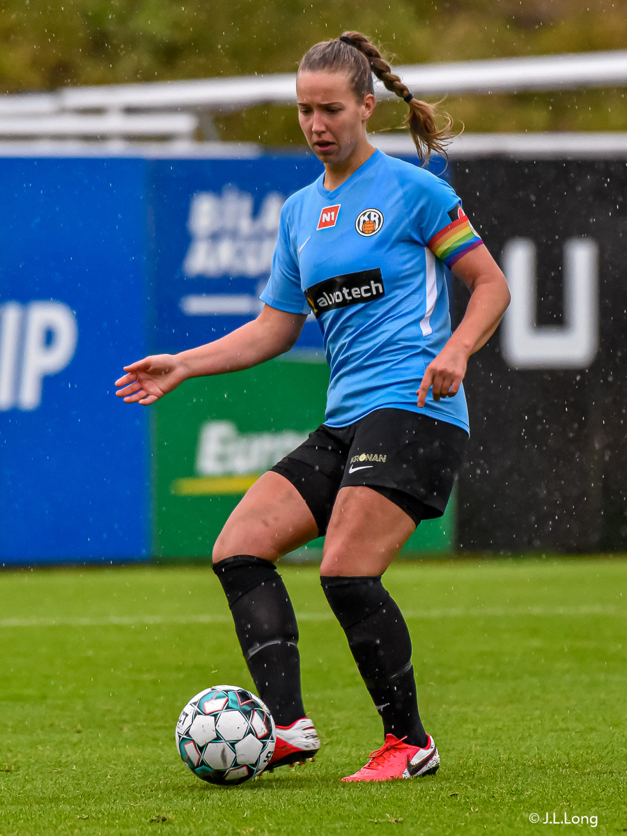 Phoenetia að leika sér að þessu KR liði. Vinnur boltann á miðjusvæðinu, keyrir upp og kemur með sendingu upp kantinn í Helenu sem kemur með boltann fyrir en KR hreinsa