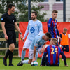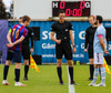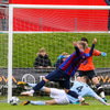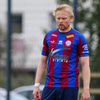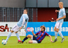 Arkadiusz fer niður í baráttu við Árna Elvar og kveinkar sér. Tiltölulega fljótur á fætur og er í lagi.