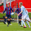 Vuk í dauðafæri eftir undirbúning Sævars en fær boltann í höndina og framhjá.