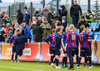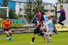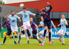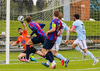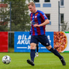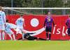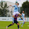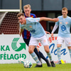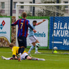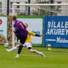Bjarki Aðalsteins skallar boltann í net gestanna en flaggið á loft og það telur ekki.