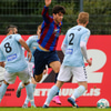 Kfiah fer illa með góða stöðu fyrir gestina. Eigingjarn og tekur skotið vel fyrir utan teig þegar David er að mæta aleinn í hlaupið úti til hægri.