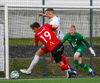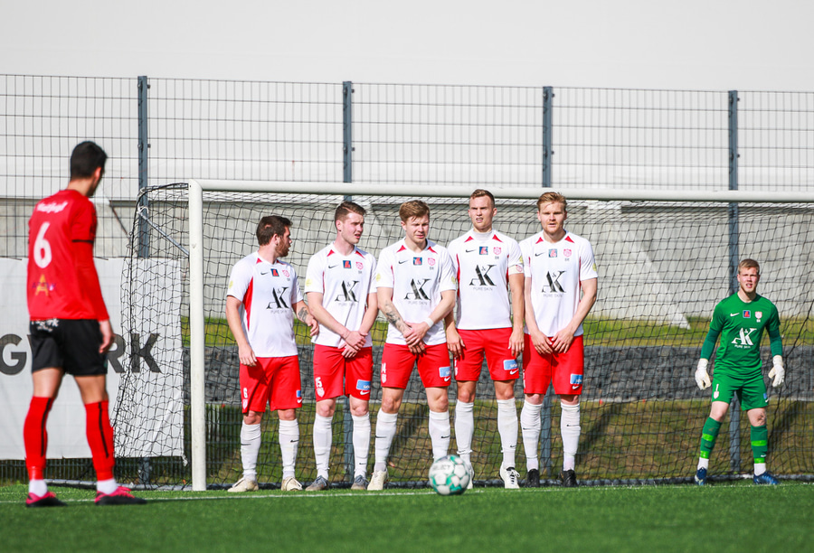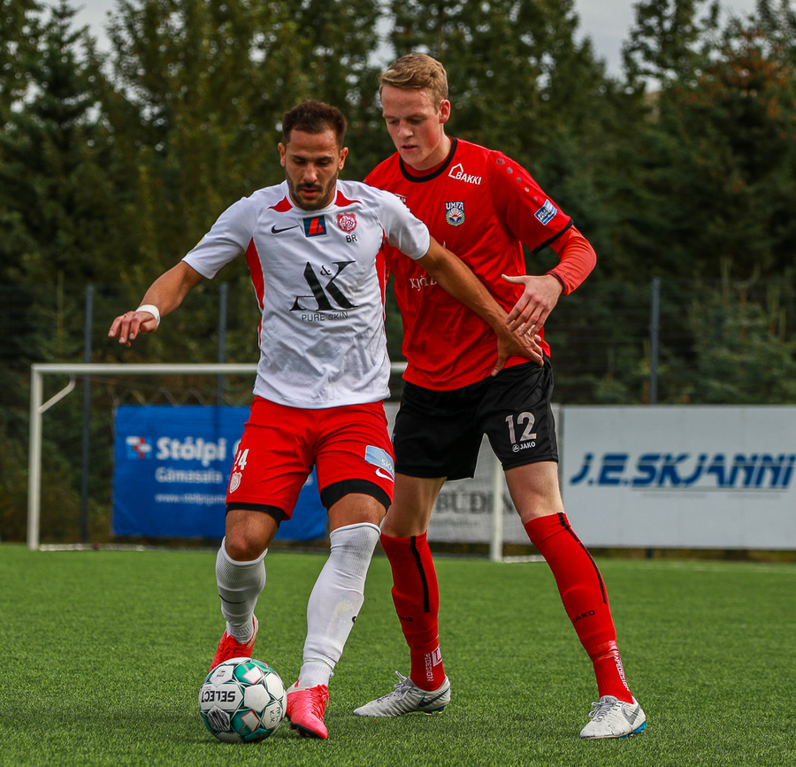 Hafliði missir boltann en vinnur hann strax aftur og krækir í aukaspyrnu svo í kjölfarið!