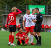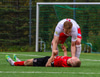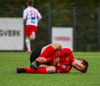 Samstuð milli Arons Birkis og Andra. Þetta lítur ekki vel út. Andri hreyfist ekki.