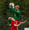 Aron með lúmskt skot af nær en Aron Birkir ver vel.