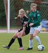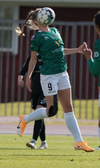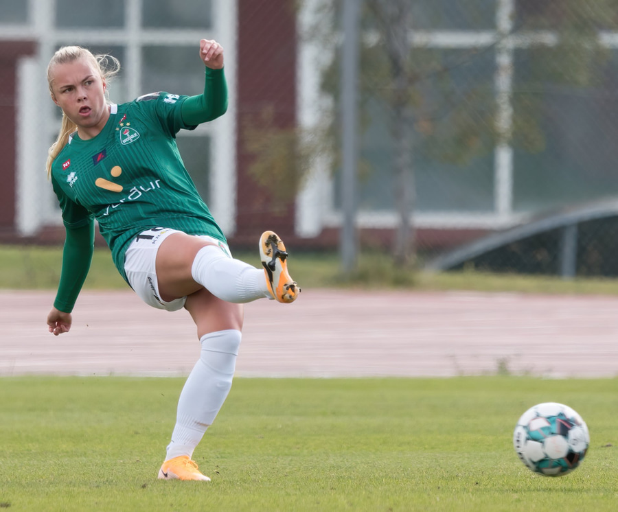 Boltinn berst á kollinn á Rakel sem nær skalla að marki, óvölduð inn í teig. Boltinn endar þó í höndunum á Hörpu í markinu.