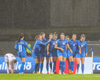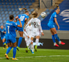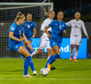 Lettland í ágætis færi. Þær fá aukaspyrnu á miðjum velli og hópurinn stillir sér upp við vítateigslínuna. Mér sýndst Karlina eiga skotið en það er rétt framhjá markinu