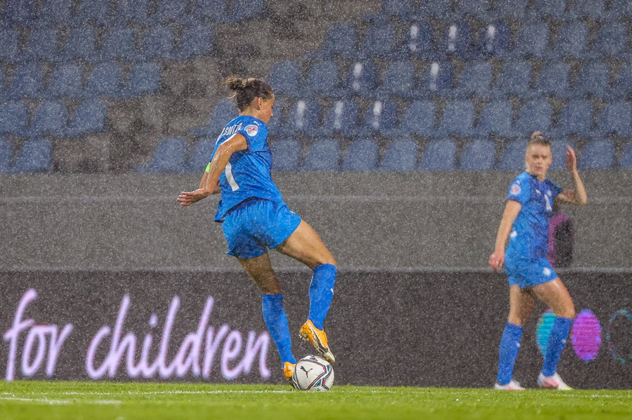 Undankeppni EM kvenna fer því loksins aftur af stað í kvöld en þessi leikur átti að fara fram snemma í sumar. Það er að sjálfsögðu útbreiðsla kórónuveirunnar sem hafði þessi áhrif. Þá var Evrópumótinu, sem átti að fara fram í Englandi 2021, frestað um eitt ár og verður haldin þar í landi 2022.