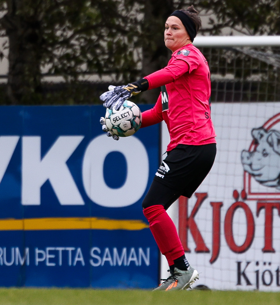 Sturluð fyrirgjöf frá Gummu sem fer yfir Önnu Maríu og virðist stefna á Krístínu Ernu en Erin gerir vel í að slá boltann frá áður en Kristín stangar hann í netið.