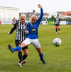 Fínt færi hjá KR. Kristín Erna kemst inn á teiginn en skot hennar á Erin er máttlítið.
