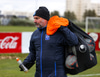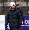 Þá ganga liðin inn á völlinn, í sitthvoru lagi, eins og venjan er vegna sóttvarnarráðstafana. KR koma fyrstar út á völl og Stjarnan fylgir í kjölfarið.