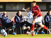 Christian Köhler tekur hornspyrnu frá vinstri en spyrnan er afar léleg en Matti Villa dúndrar boltanum burt..