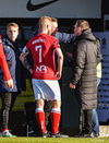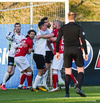 Aukaspyrna við varamannabekkina, Jónatan Ingi fer fyrir boltann, Haukur Páll ætlar að fara lúðra boltanum fram en á sama tíma potar Jónatan boltanum í burtu og Haukur Páll dúndrar í sköflunginn á Jónatani og allt gjörsamlega tryllist við varamannabekkina!!!! Haukur fær réttilega rautt spjald.